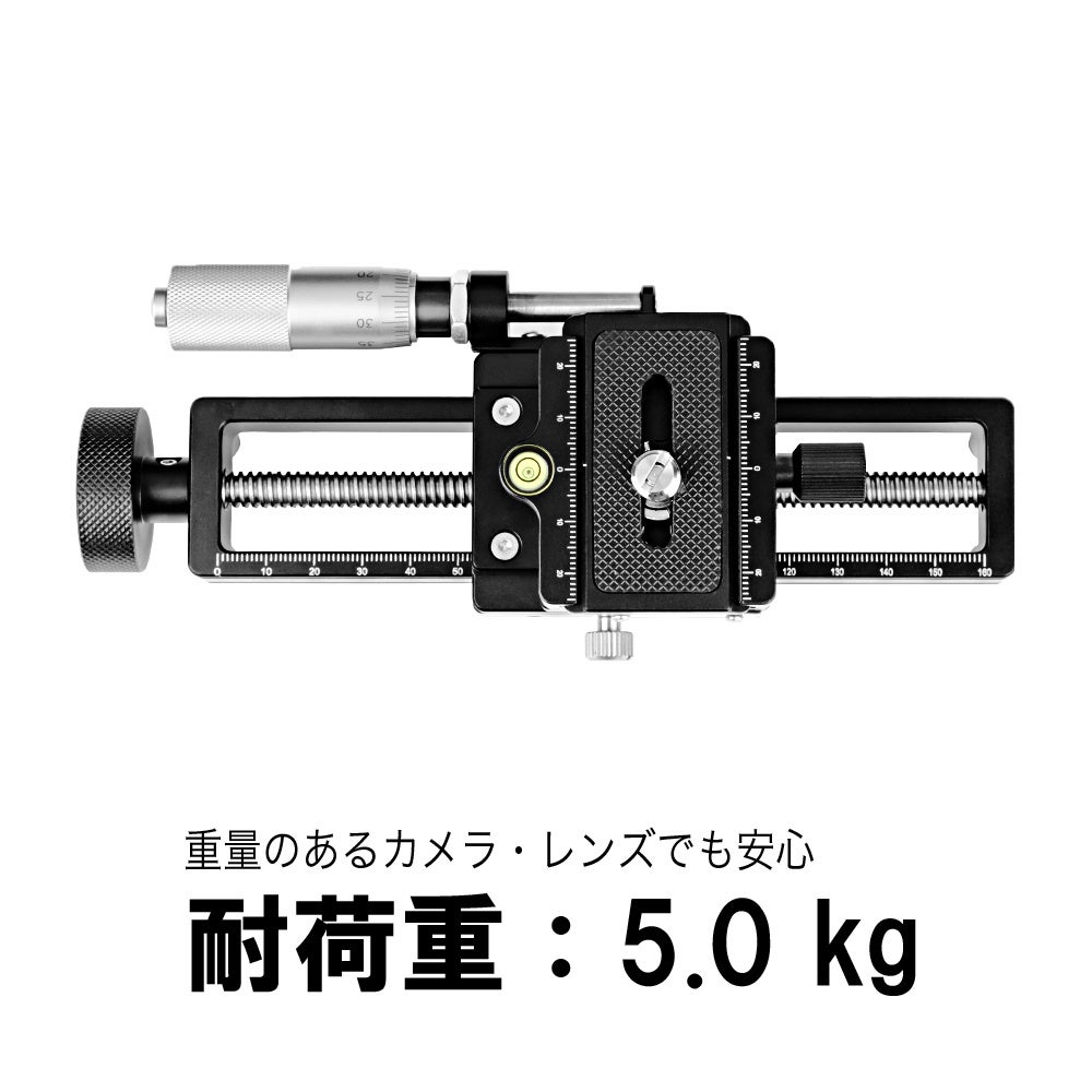 「AH-MGA170」の微動ハンドルを1回転させることで0.5mmの移動が可能で、微動台調整ハンドルでは1回転あたり2mmの移動ができます。この高精度な制御システムは、通常の2倍程度のマクロレンズはもとより5倍以上のスーパーマクロレンズにさえ十分に対応しており、より高精細の撮影可能。