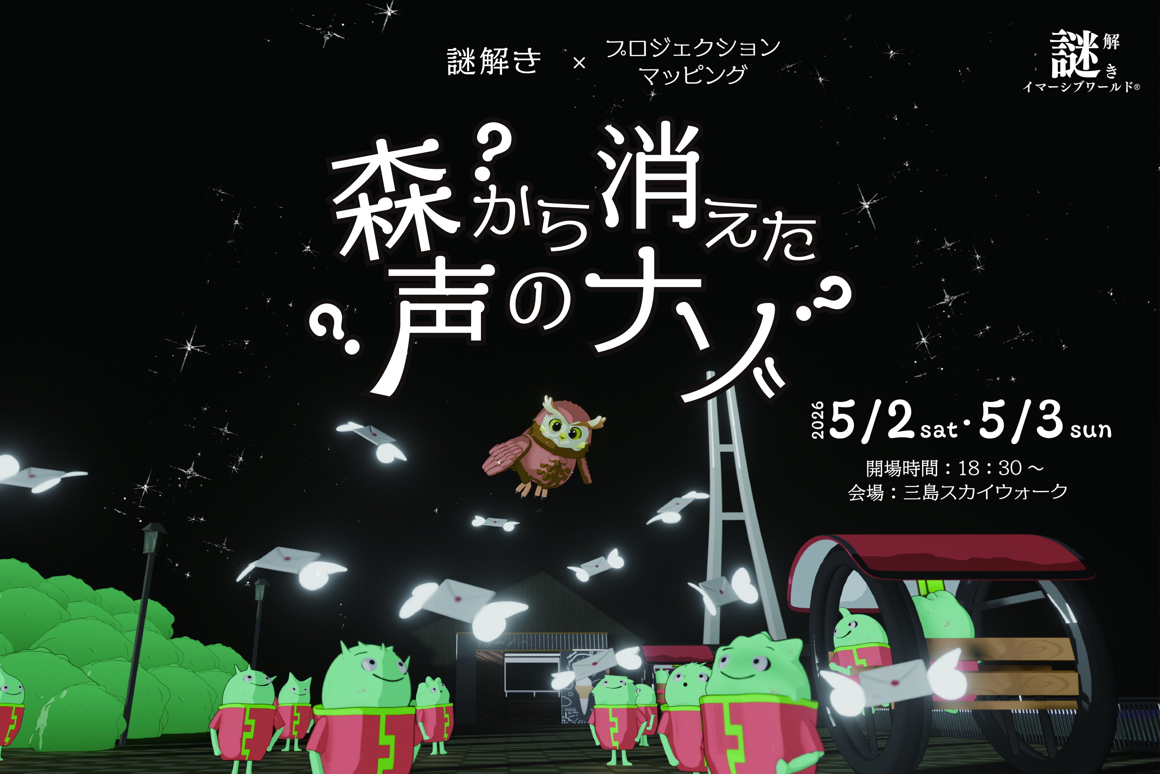 富士山を望む全長400mの大つり橋「三島スカイウォーク」(所在地:静岡県三島市、運営:株式会社スカイウォーク、本社:静岡県三島市、代表:宮澤俊二)は、三島エリア初※1となる、夜間の屋外プロジェクションマッピングと謎解きを組み合わせた没入型ナイトエンターテイメント「謎解きイマーシブワールド® ?森から消えた声のナゾ?」を2026年5月2日(土)・3日(日)の2日間限定で開催します。あわせて、本イベントのチケット発売を本日4月16日(木)より開始します。