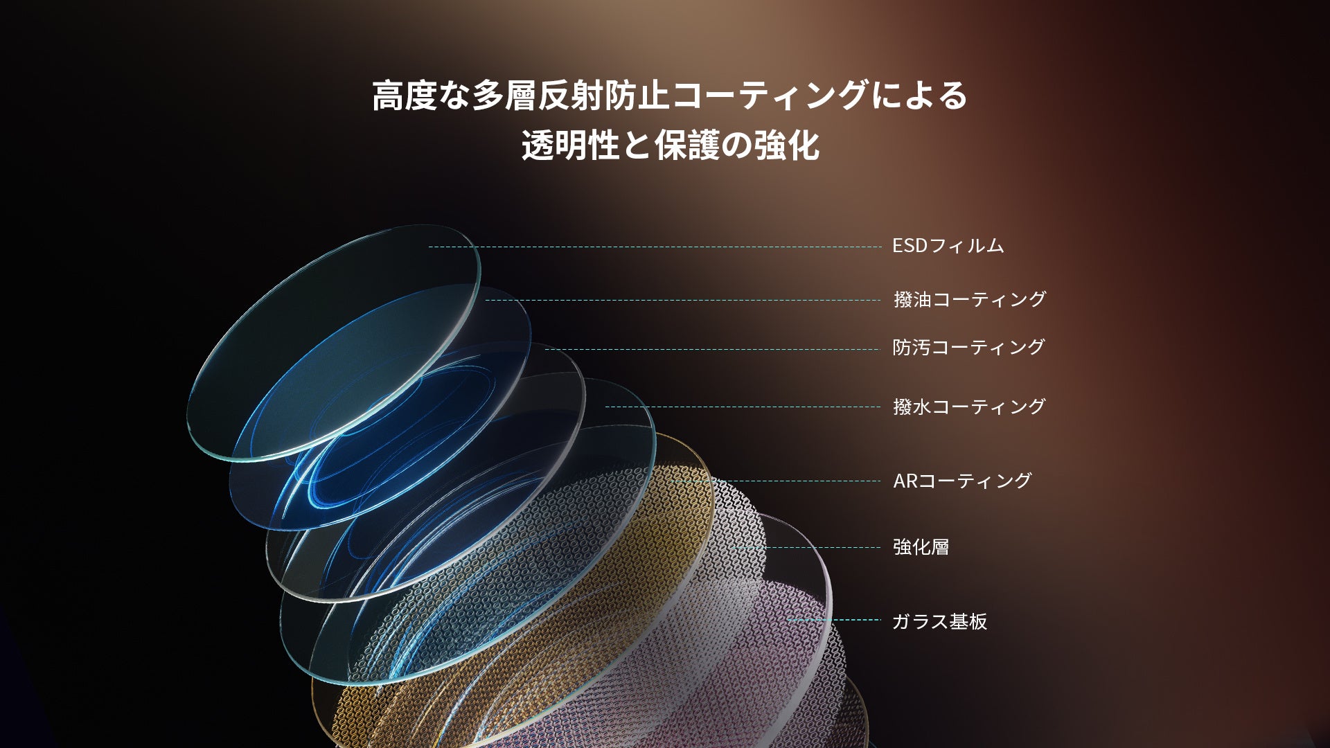 撥油、防汚、撥水コーティングなど高度な多層反射防止コーティングを施しています。
