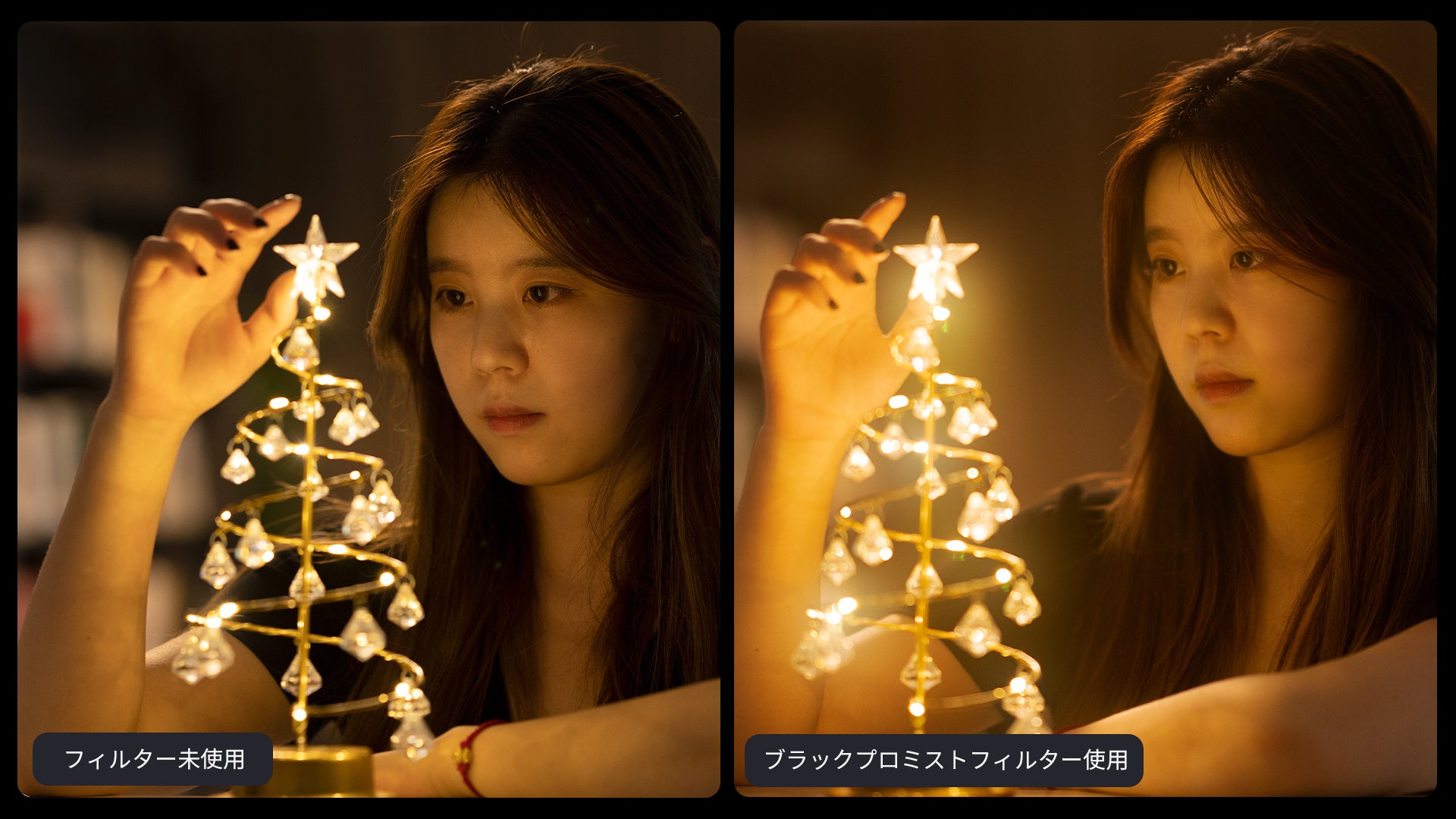 磁気ブラックミストフィルター1/4を使用すれば、輪郭をぼかしたような効果を実現でき、ヴィンテージ風の幻想的な画作りを可能になります。