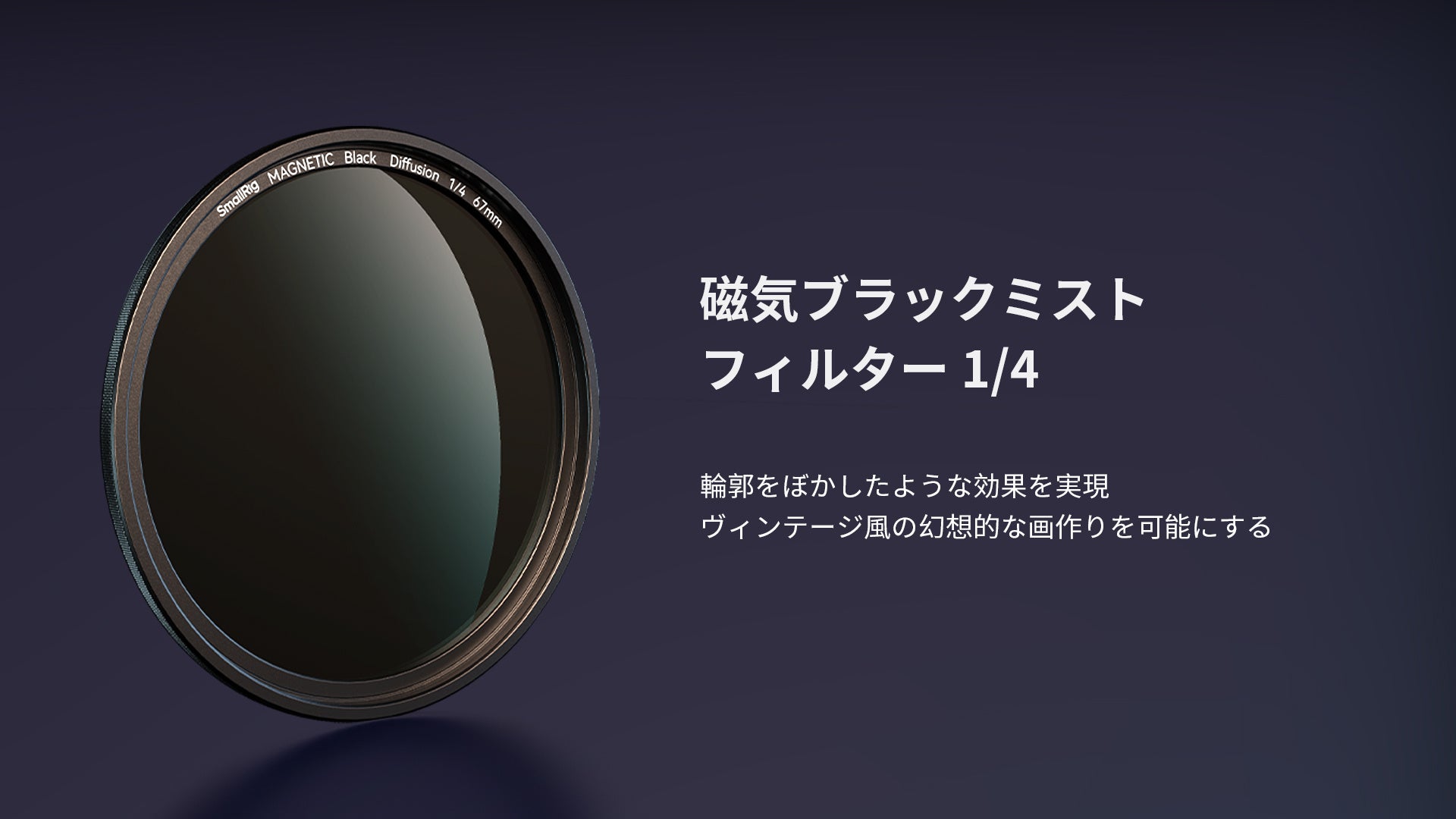 SmallRig 67mm磁気フィルターシステムにはVNDフィルター、CPLフィルターとブラックプロミストフィルターがあります。