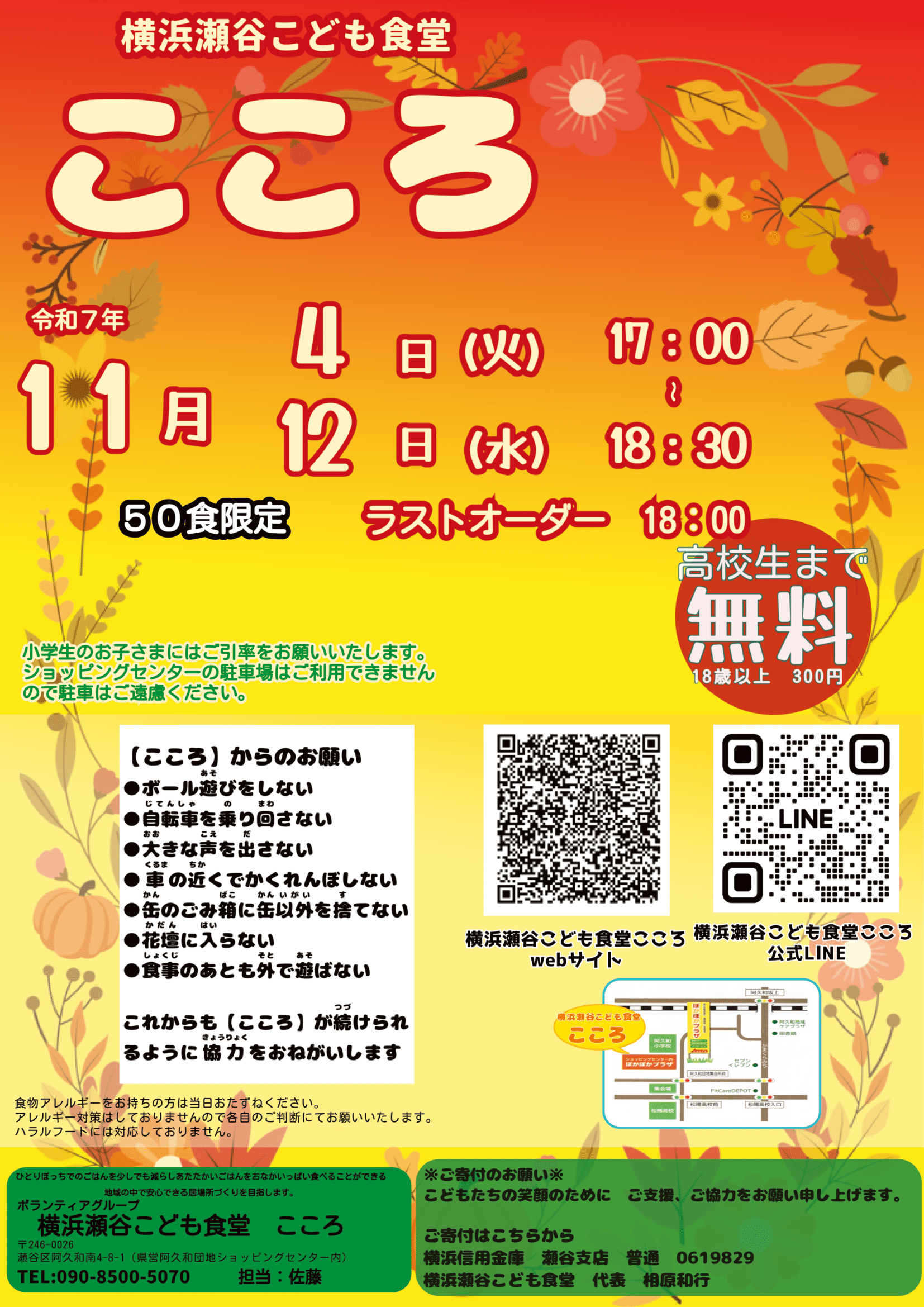 主 催: ボランティアグループ 横浜瀬谷こども食堂 こころ