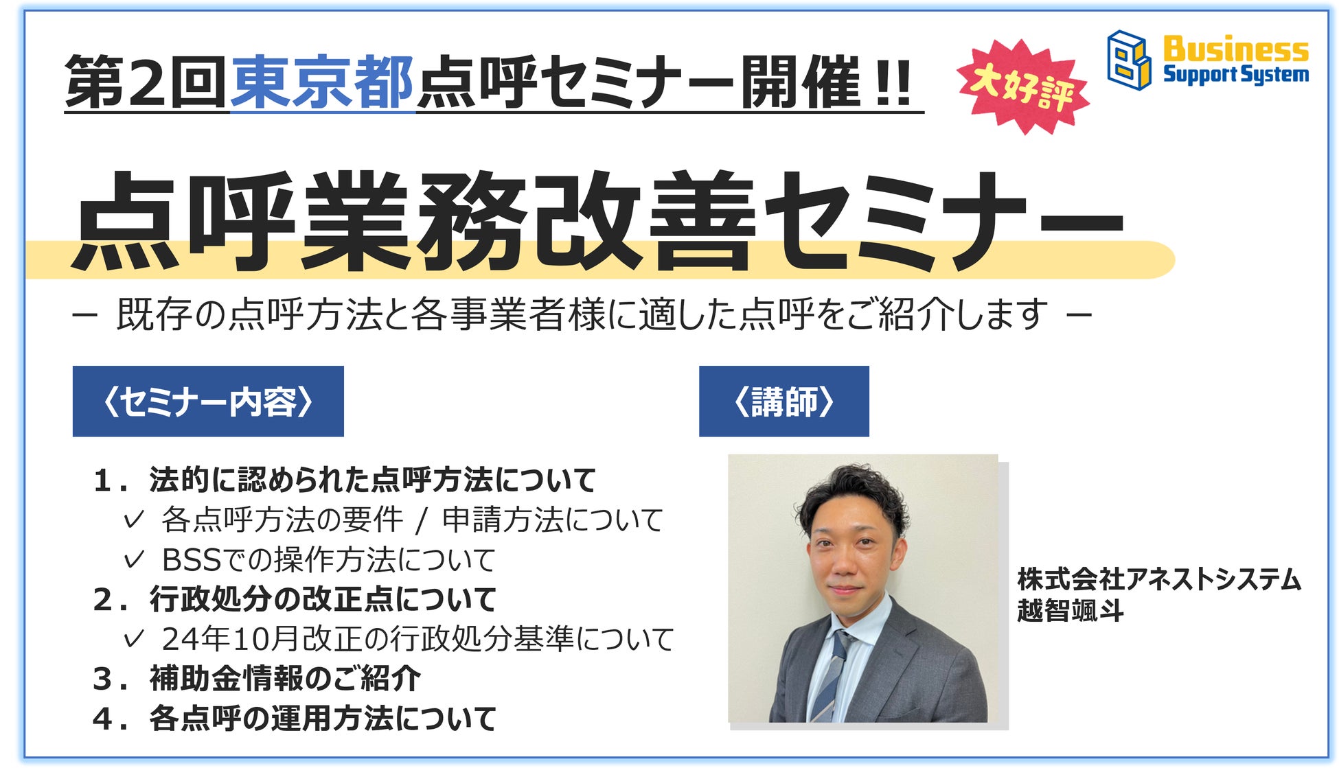 昨年全国にて実施いたしました「点呼セミナー」について、好評につき第2回を開催いたします。