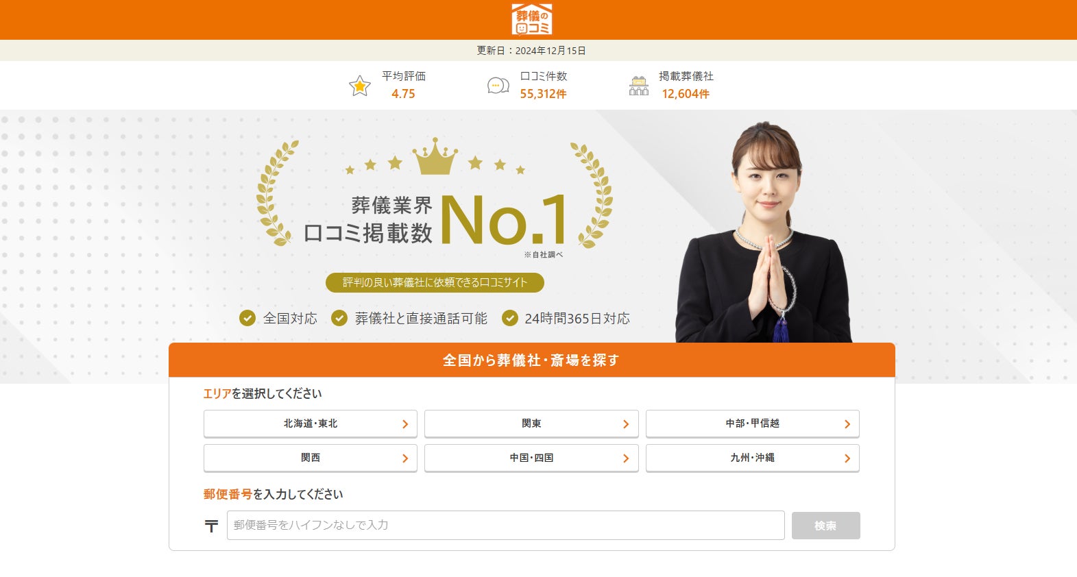 2024年12月16日「葬儀の口コミ」にしかできない選出基準で「本当に安心して相談できる葬儀社」を各都道府県最大5社選出。特設ページを公開しました。