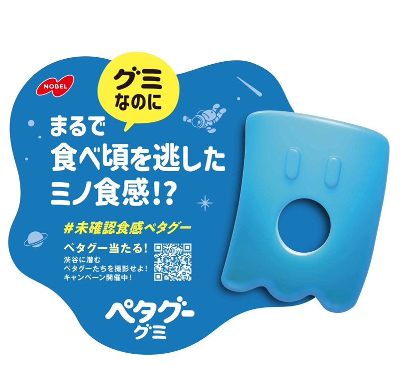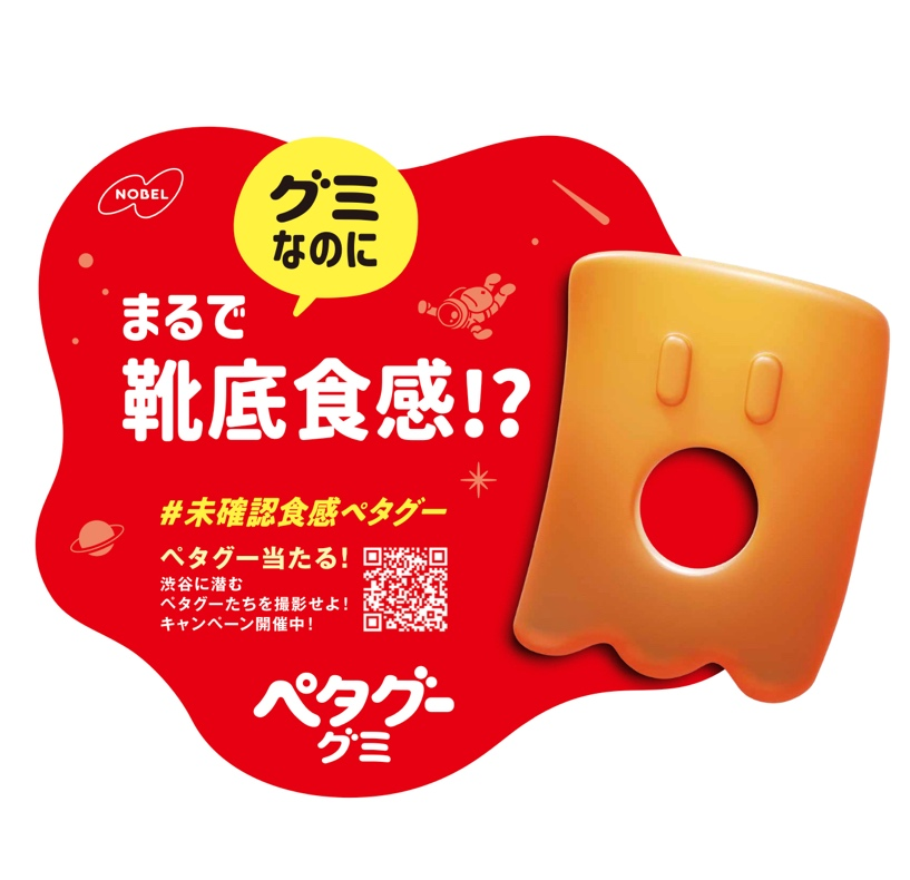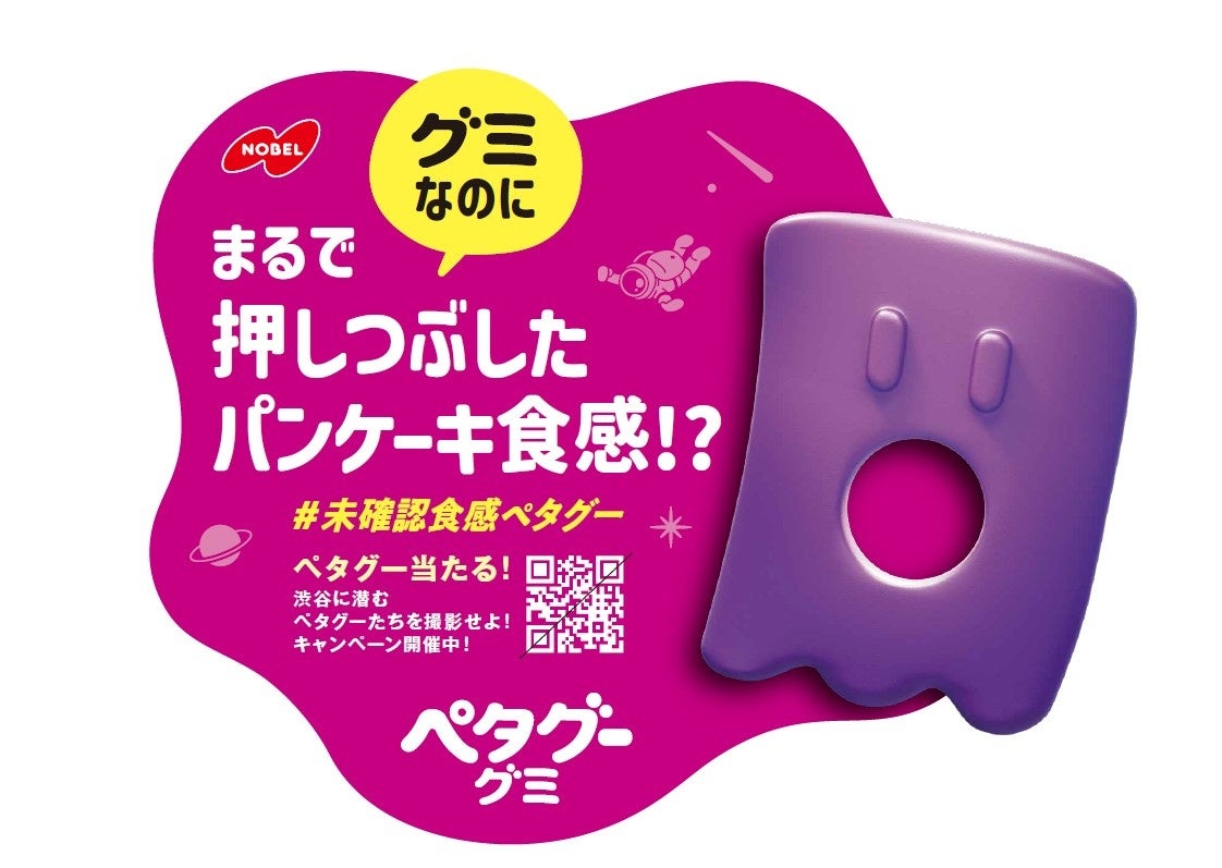 ノーベル製菓株式会社(本社:大阪市生野区、代表取締役社長 馬場 敏明、以下ノーベル製菓)は、2024年11月11日(月) (※2)より「ペタグーグミ」のプロモーションとして「ペタグー食感ジャック広告」を実施します。未確認食感ペタグーが渋谷の街に上陸!渋谷駅周辺の約130カ所(※1)に屋外広告として登場します。