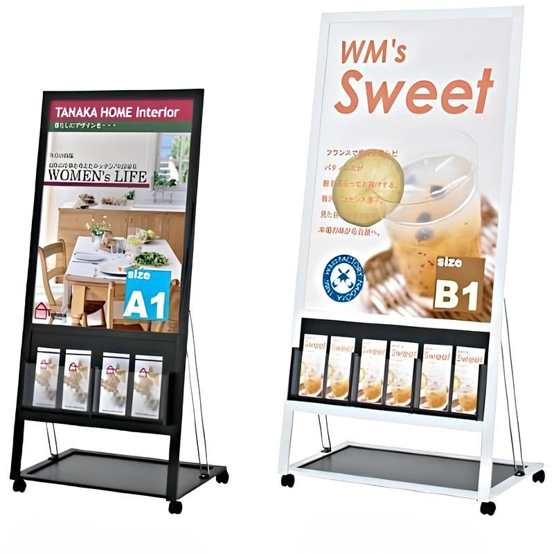 ポスターでお客様の興味をひいてからパンフレットをてに取っていただくという、広告効果と訴求効果を両立できる優れもの!展示ブースで目立つようにアピールしたり、旅行のポスターとパンフレットを一緒に掲示したりと使い方は千差万別です。ポスターの入替も簡単にできますので、移り変わりの多い商品や企画、イベント等の掲示にぴったりです。