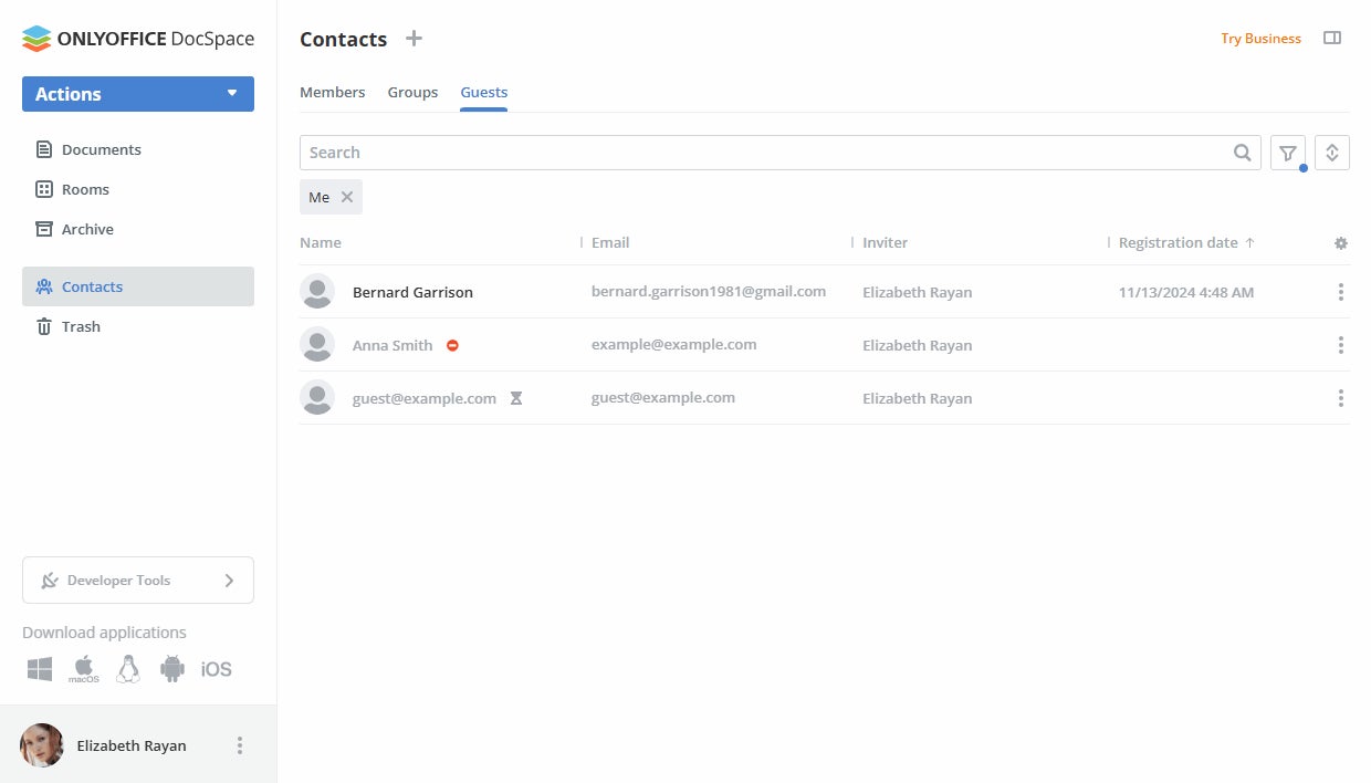 新しいゲストタイプも無料コンタクトです。ゲストはルームを通じて招待することができ、招待されたルームのみにアクセスできます。各ユーザーには、招待したゲストのリストが各自に用意されています。