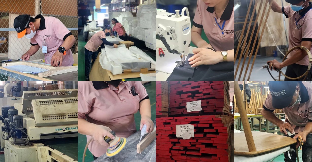 ジェネパベトナム社は海外工場ではあるものの、日本品質を実現するという理念を掲げ、リビングダイニング、チェア、ソファ、ベッドフレーム等の木工製品を製造しています。