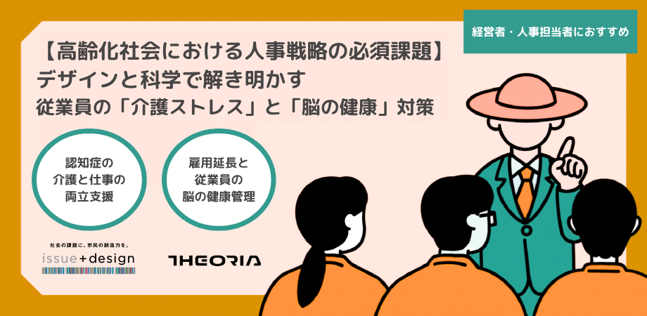 テオリア・テクノロジーズ株式会社(本社:東京都千代田区/代表取締役CEO:坂田 耕平、以下 テオリア)は、特定非営利活動法人イシュープラスデザイン(東京事務所:東京都文京区/代表:筧 裕介、以下issue+design)と協働し、企業の人事担当者・経営層向けに「認知症世界の歩き方 実践ワークショップ × 脳の健康セミナー」を開発、提供を開始しました。