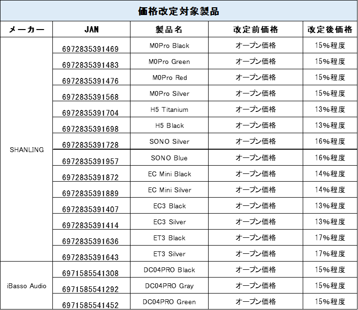 誠に不本意ではございますが、一部製品の価格を改定させて頂くこととなりました。