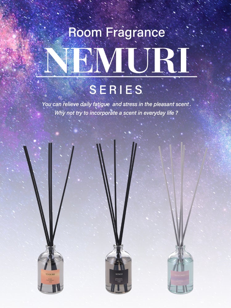 家具およびインテリア雑貨の卸売を行う不二貿易株式会社(本社:福岡県北九州市、代表取締役:田坂 良祐)は「NEMURI ディフューザー」の累計販売数が3万個を突破したことをお知らせいたします。関心が高まる「睡眠」に注目したシリーズで、リラックス効果の高い香りを使用しています。容量は試しやすい100mlで、長いスティックが特徴のデザインです。こちらはインターネットや全国のディスカウントストア、ホームセンターなどで販売しています。