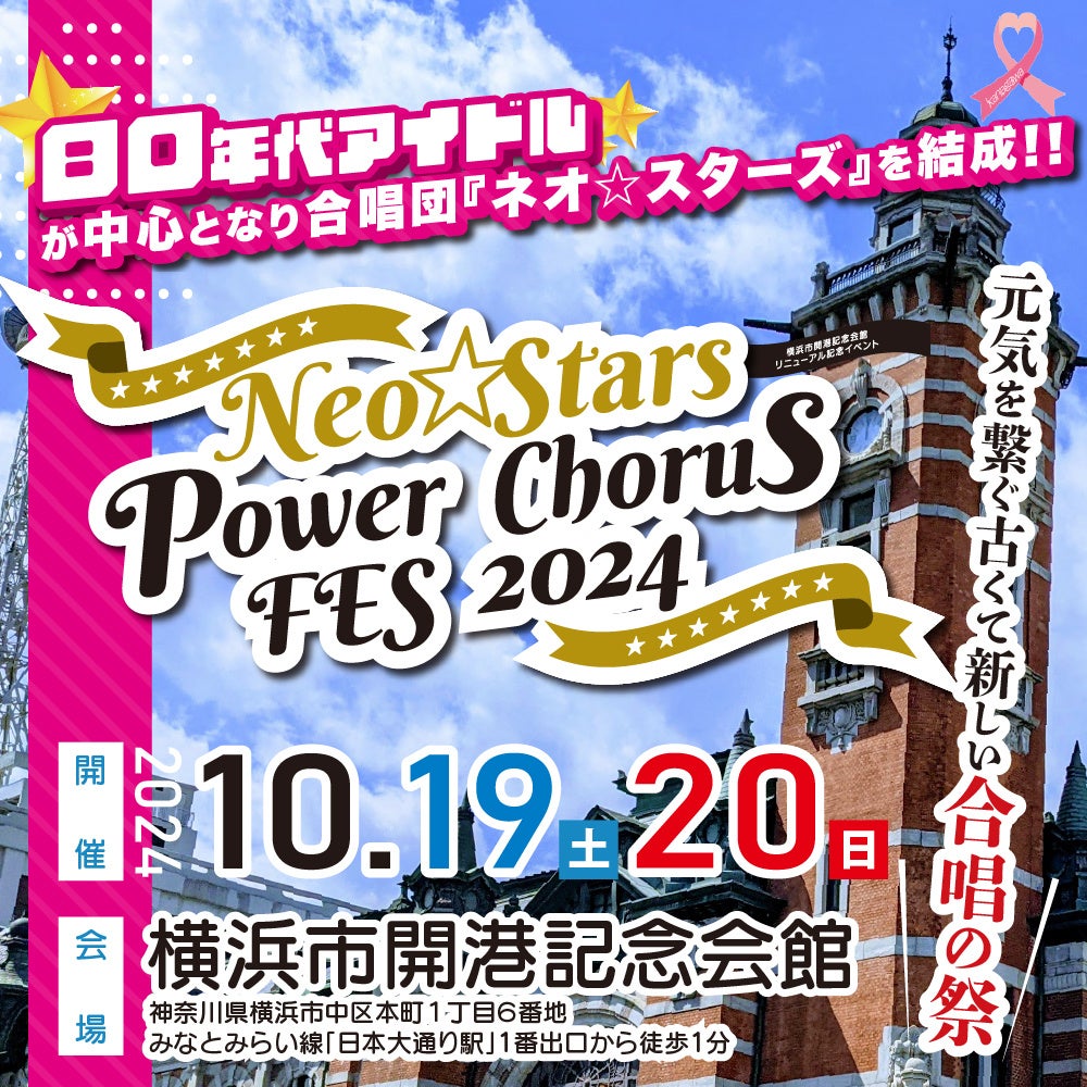 80年代アイドルを中心に合唱団「ネオ☆スターズ」を結成!横浜市開港記念会館で「元気を繋ぐ古くて新しい合唱の祭」を2日間開催♪TV番組 #オールスター合唱バトル でも話題の合唱を一緒に楽しみましょう♪