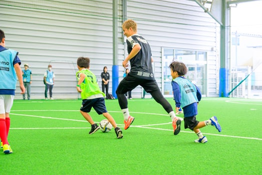 子どもたちは、ドリブルやパスなどの基本的な練習から実践的なミニゲームまで、プロの第一線で活躍された森﨑さんや中島さんをはじめとしたコーチたちから熱い指導を受けました。