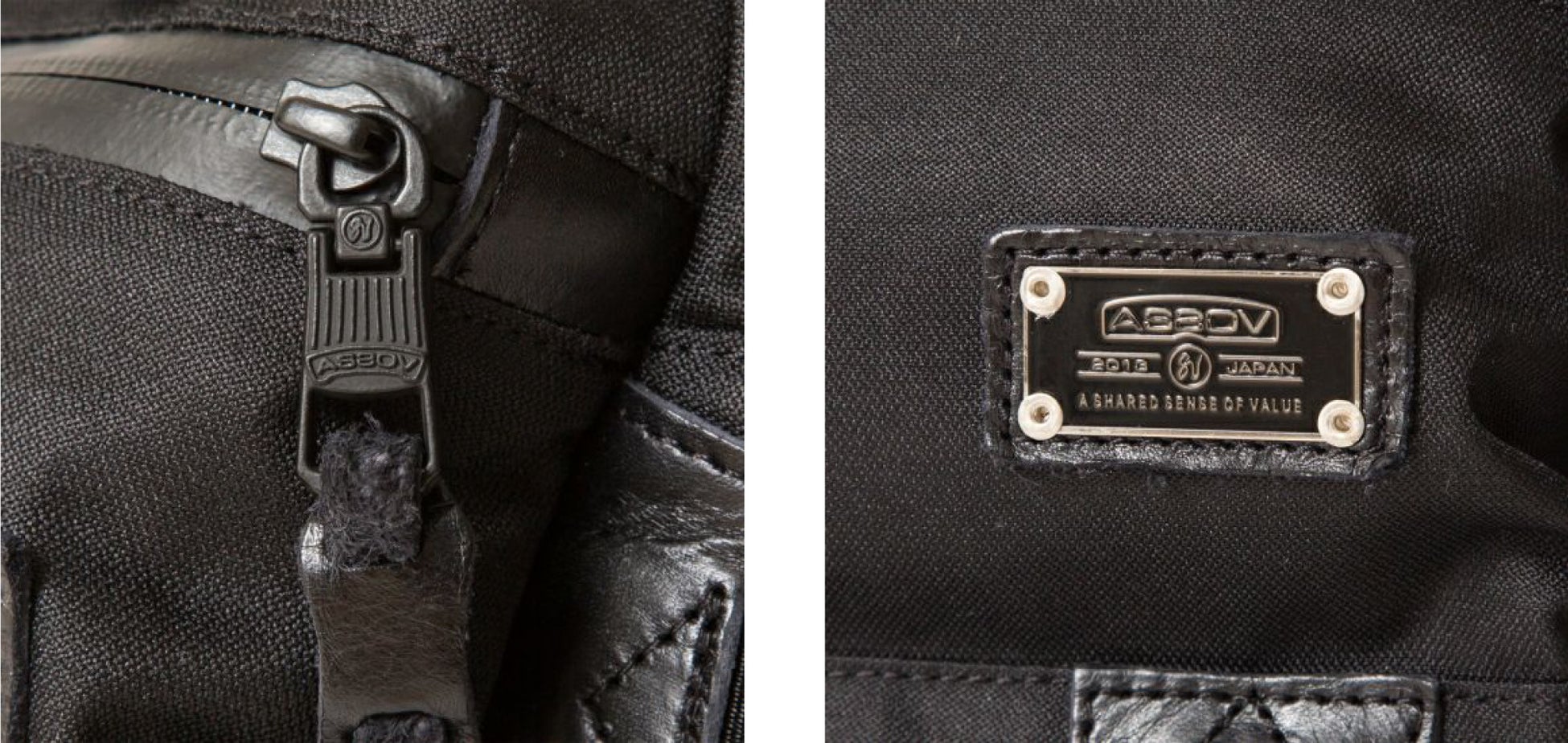 細部のパーツにもこだわり、AS2OVオリジナルのロゴパーツ、引き手パーツは金具にレザーの引き手を付けてディテールに確かな雰囲気を纏わせています。