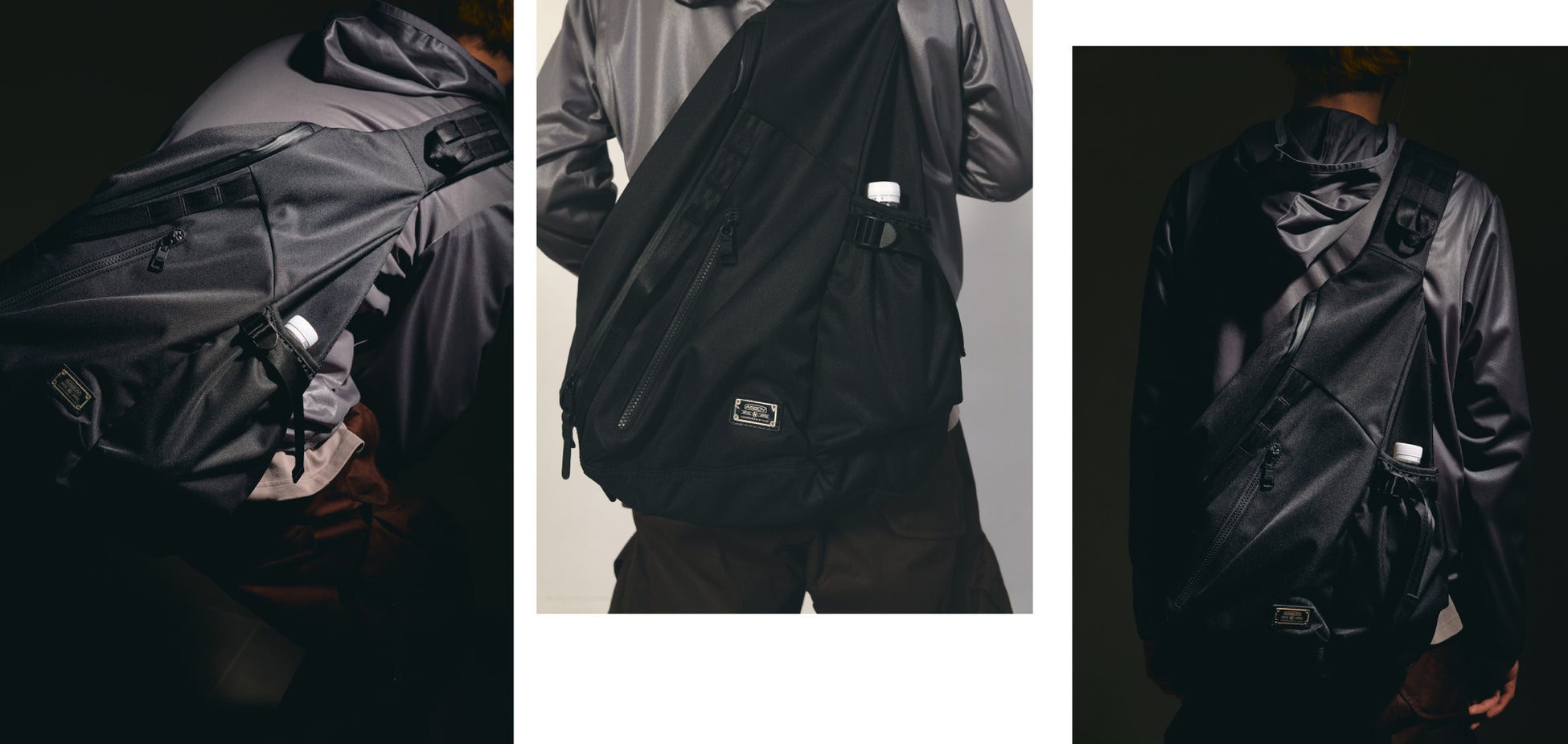 そしてデザインはCONZから提案を受けたトライアングルのワンショルダースタイルを採用。バックパックやショルダーバッグに飽きてきたファッショニスタたちに向けて今新鮮なバッグスタイルを提案しています。