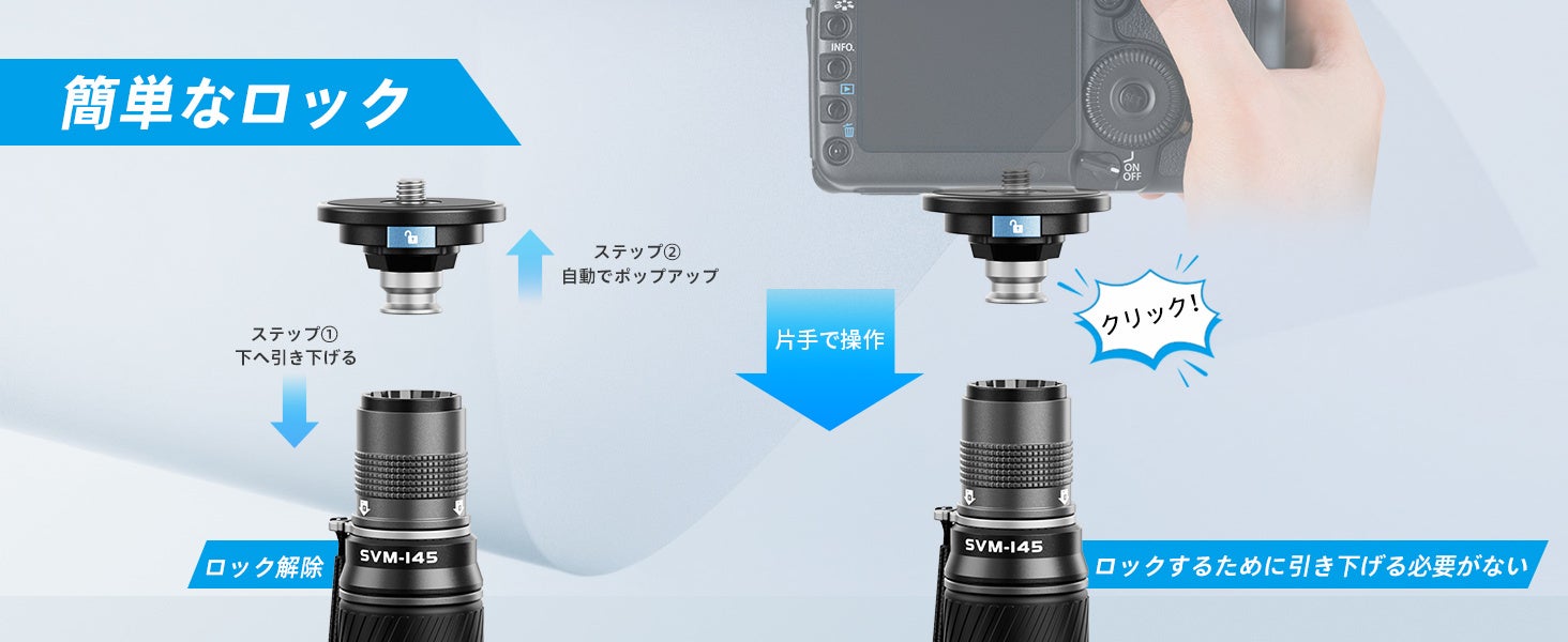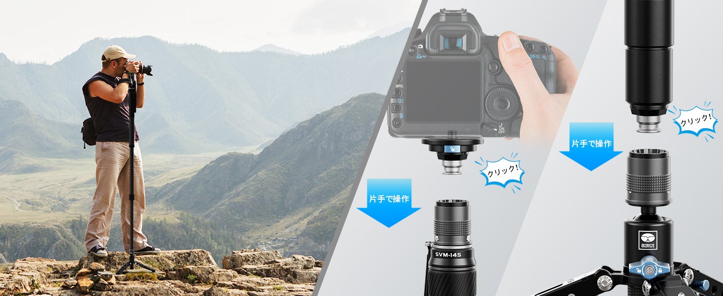 SIRUIは、革新的なアイデアと迅速な操作性で知られるラピッドシステムSVT75を搭載した最初の製品を発売し、今回新たにSIRUI SVMシリーズが誕生しました。この新製品はワンステップ高さ調整ラピッドセットアップモジュラー一脚として、さらに多くの撮影ニーズに対応します。