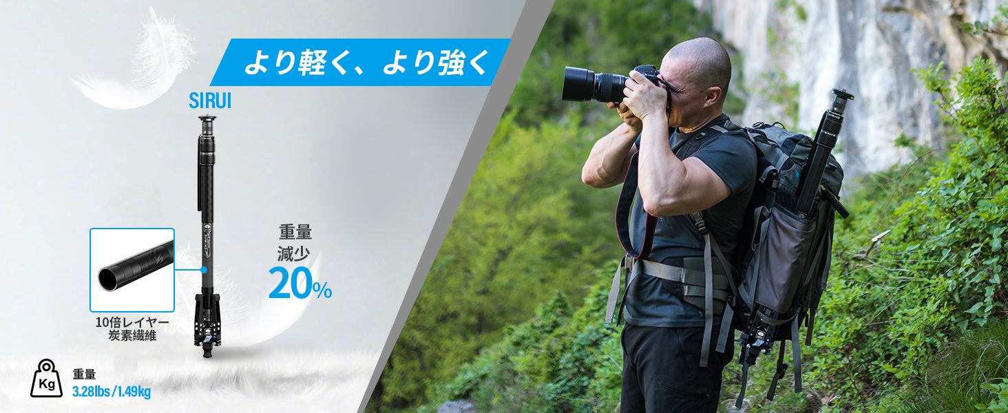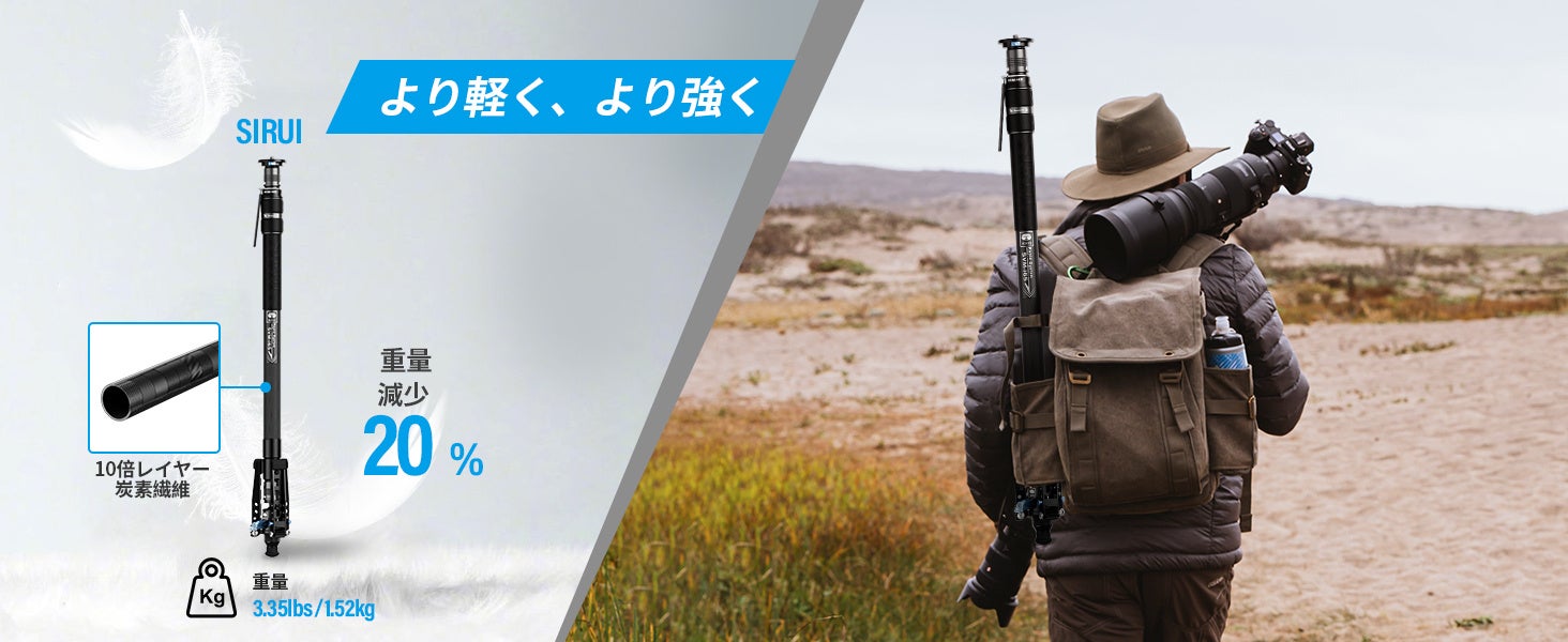 【軽量で素早い動き】この柔軟な一脚は、動きの速い状況でも素晴らしい性能を発揮し、軽量なカーボンファイバーが追加されることで一脚の重量がさらに軽減され、ランアンドガンの撮影に最適です。