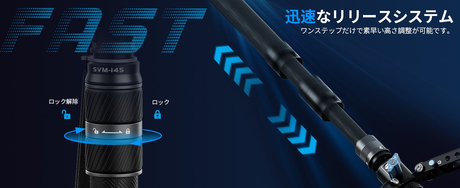 SVM シリーズ ワンステップで急速高さ調整可能なカーボンファイバー一脚【特別プロモーション】