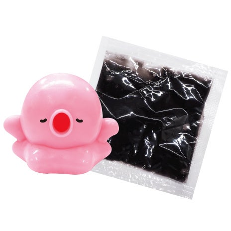本商品は、墨色のスライムを吸って、はき出すことができる、タコの形の遊べるカプセルトイです。玩具メーカーである当社では、これまでもお子さまに人気の高いスライムのおもちゃを販売してまいりましたが、今回、楽しく遊べる、これまでに無いスライムを使用したカプセルトイをお届けしたいとの思いから開発をスタートしました。