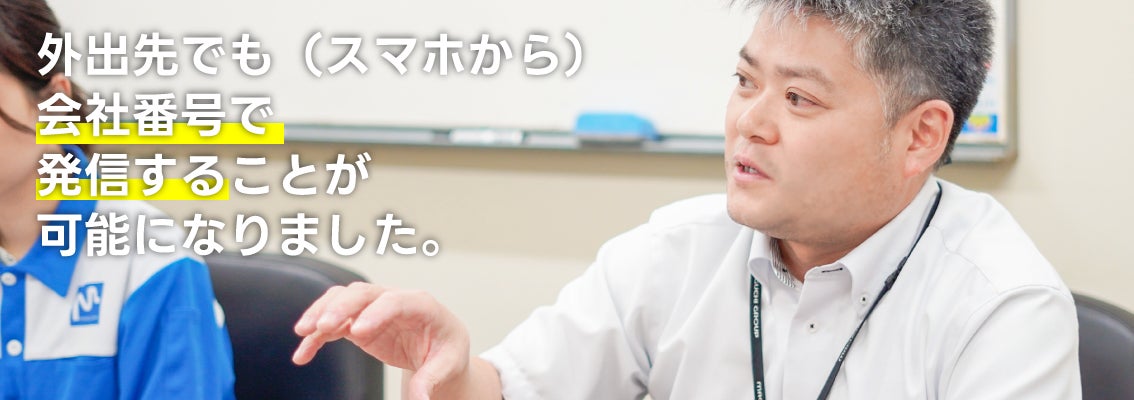 「以前は電話をかけたい時には子機を持って静かな部屋まで走ったりしていましたが、スマホを子機として使用できるようになりそのようなことがなくなりました。さらに外出先でも(スマホから)会社番号で発信することが可能になりました。」