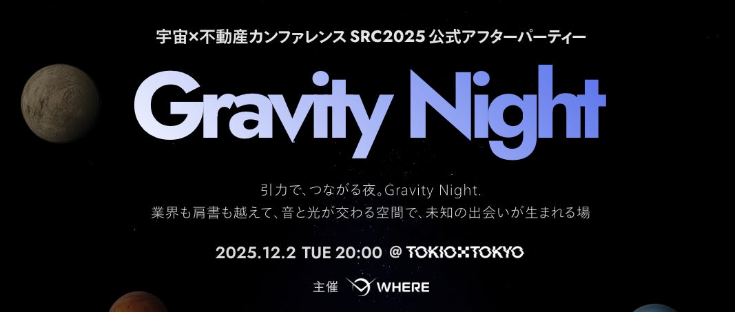 産官学を横断する多彩な登壇者に加え、新たなスポンサーの参画、そして公式アフターパーティー「Gravity Night」の開催も決定。宇宙産業と不動産業界の融合、そして新たな産業の創出を目指す本カンファレンスが、いよいよ来月開催されます。