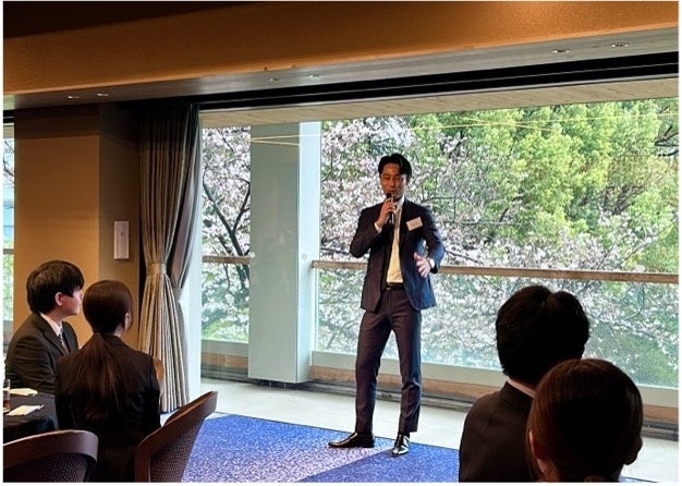 まずは入社式にて、新入社員の方々に弊社が掲げるMVV(ミッション・ビジョン・バリュー)の動画をご覧いただきました。その後、代表取締役社長 馬場浩太から挨拶があり、「株式会社タイムレスで、仲間と共に困難を乗り越え、素晴らしい社会人生活を送ってください。一緒に良い会社、良い未来を作っていきましょう。」といったメッセージがありました。部長陣一人一人の紹介の後、祝電披露、入社証明書授与と新入社員による答辞を実施いたしました。その後は、食事と会話を楽しみながらの懇親会が実施されました。最後に、店舗営業部 部長 岡根壮太より新入社員に向け、「これから株式会社タイムレスの一員として、共に歩んでいきましょう。皆さんのこれからの活躍を全力でサポートしていきます。」という、まさに「想いに寄り添うパートナー」を表現する温かいメッセージが伝えられました。
