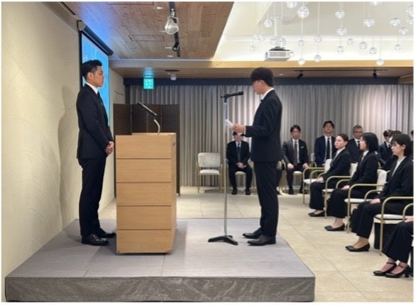 新入社員たちは緊張と期待を胸に、新たな一歩を踏み出しました。式典では、穏やかな雨音を背に、温かな笑顔と共に未来に向けた決意が新たに誓われ、これからの挑戦に向けて力強くスタートを切る瞬間となりました。