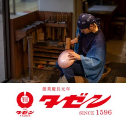 その創業は慶長元年(1596 年)、仙台の城下町がまだ生まれる前、タゼンの先祖・善蔵は、銅細工の腕を伊達政宗に見出され大阪から宮城にやってきたことから始まります。 それから 420 余年。 19 代目御銅師(おんあかがねし)が、技を今に蘇らせ、世界に発信しています。