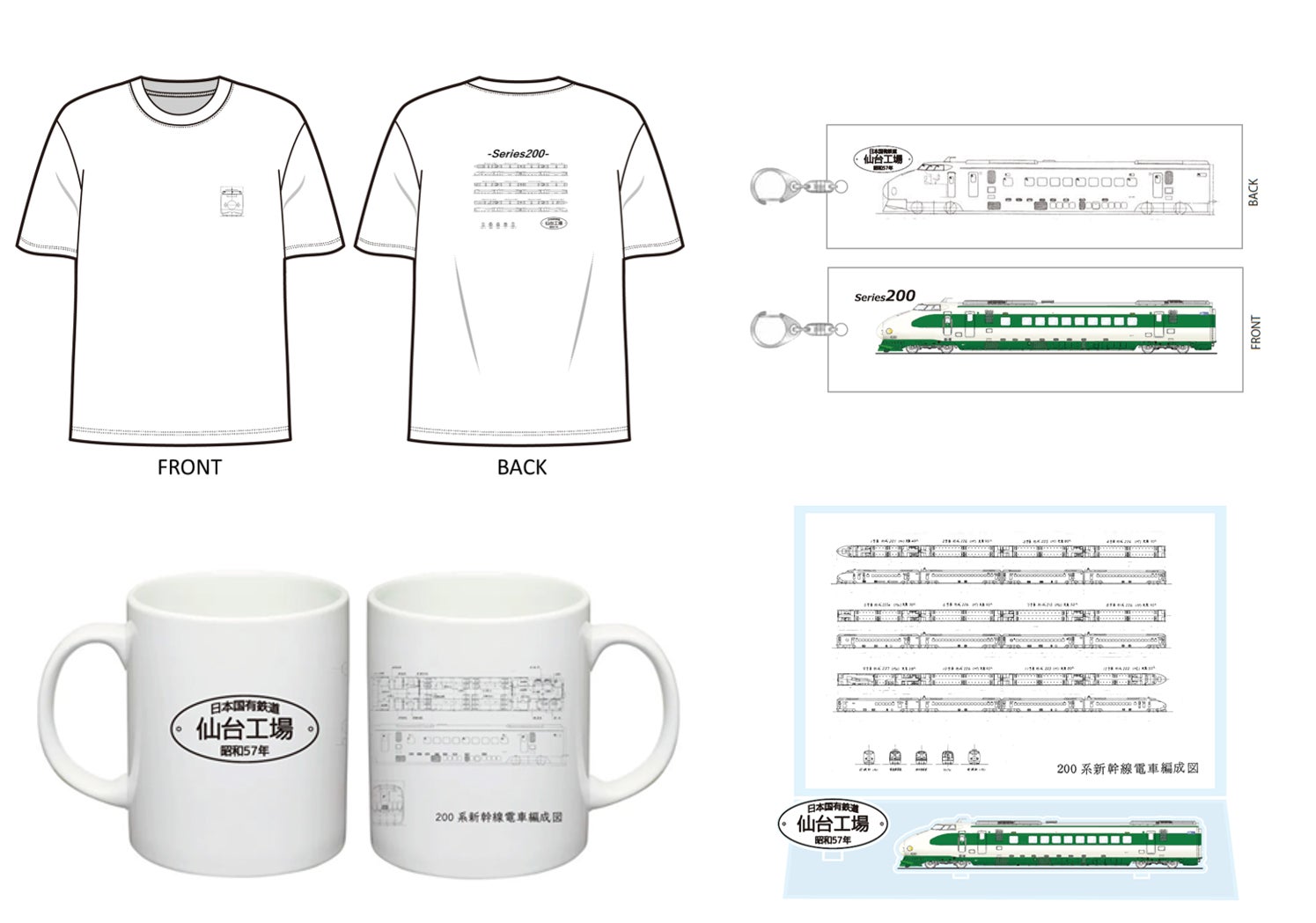 また、かつて、200系新幹線のメンテナンスを担当していた国鉄仙台工場( 現新幹線総合車両センター)において保管されていた 、ビュッフェ車含む車両図面を用いた4点の雑貨商品を販売します。