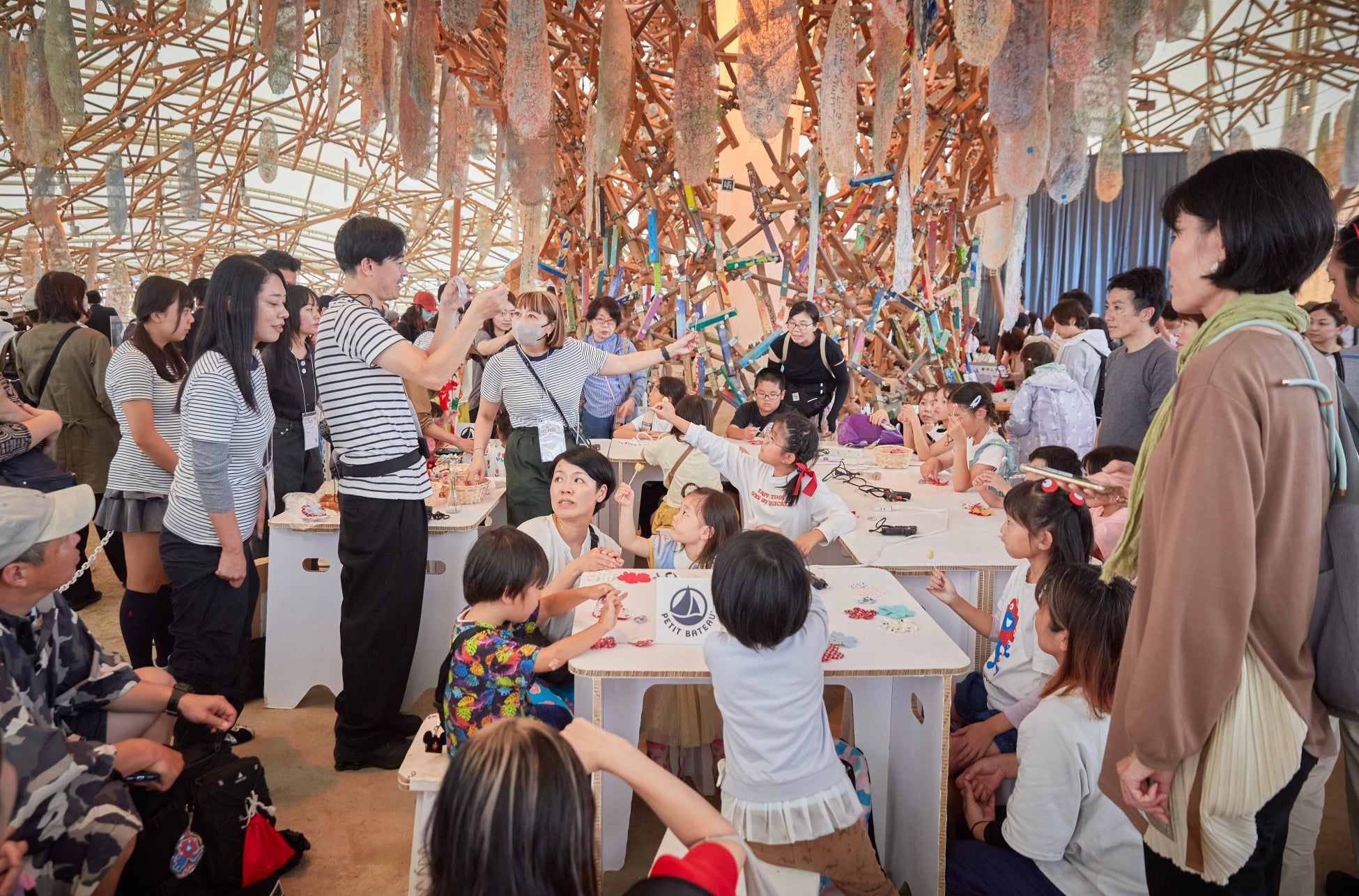 【開催レポート】プチバトーが大阪・関西万博 シグネチャーパビリオン「いのちの遊び場 クラゲ館」にて開催 洋服の端切れから咲かせる“未来の花”ワークショップ