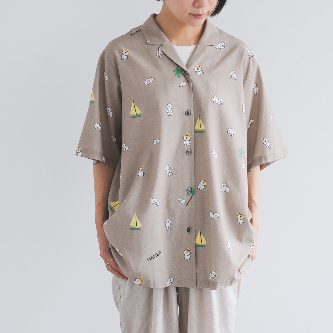 イラストレーター 塩川いづみさんの描く、ビション・フリーゼという犬種をモチーフにした人気の MAMBO シリーズ。昨年好評につき完売したアロハシャツに、2025年バージョンの新しい柄が登場しました。