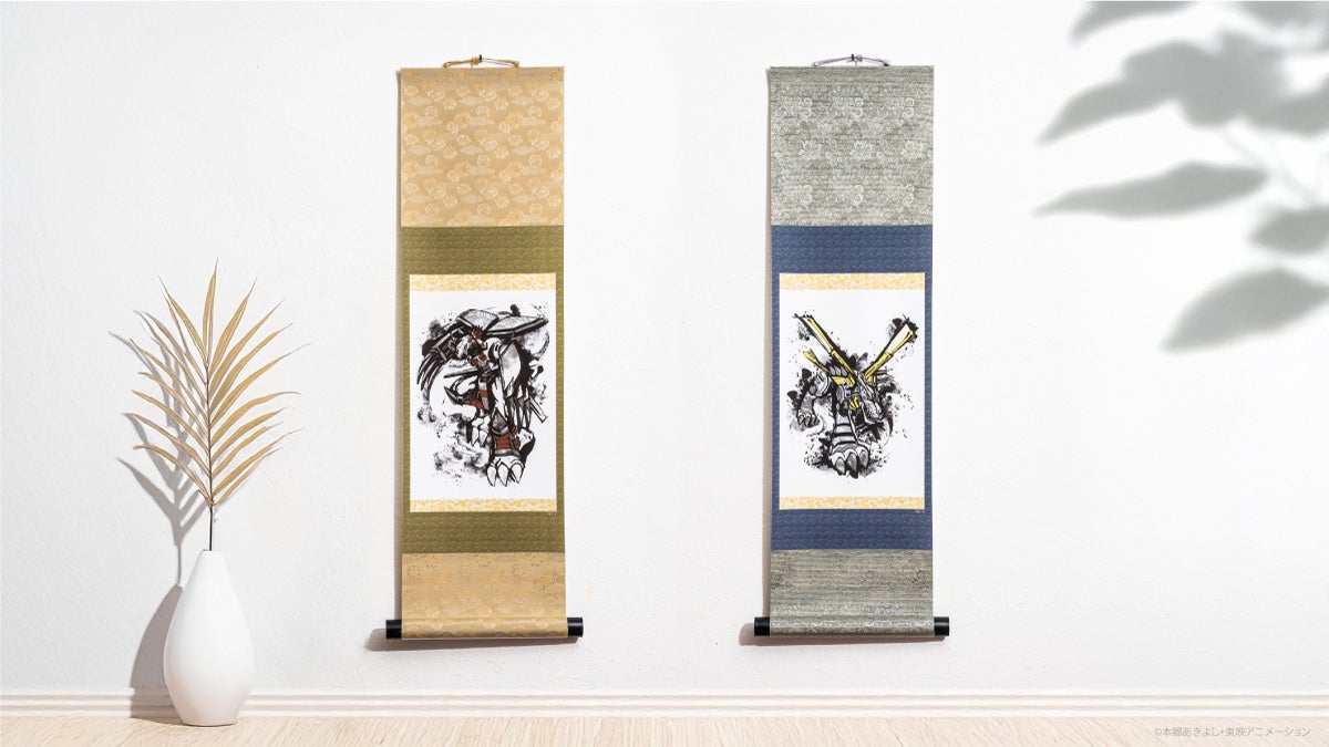 究極体デジモン『ウォーグレイモン』と『メタルガルルモン』の高さ70cm掛け軸が新登場!