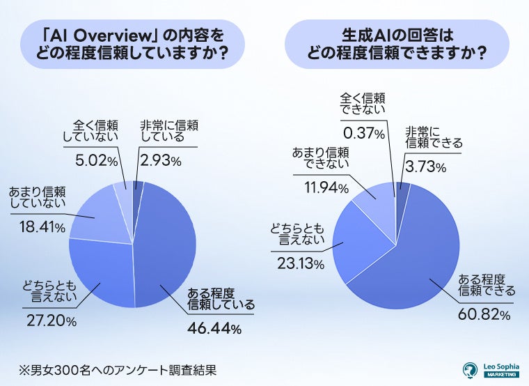 本記事では、全国の20代から50代の男女300名を対象にAI Overviewを含む生成AIの信頼度・活用実態について調査を実施しました。