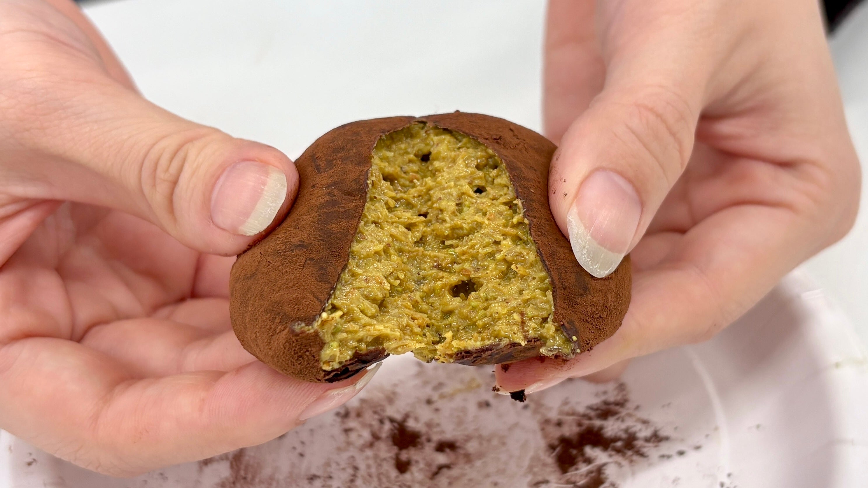 「ドバイもちクッキー(ドバイチョコ餅)」は、もちもちのマシュマロ生地にカダイフ(極細麺状の生地)やピスタチオクリーム、チョコレートなどを包み込んだ中東発祥のスイーツです。