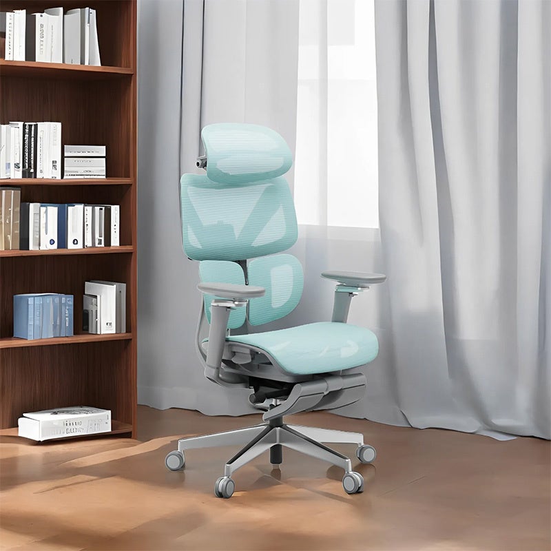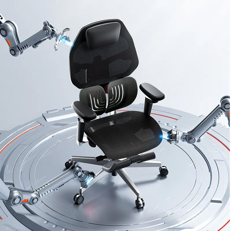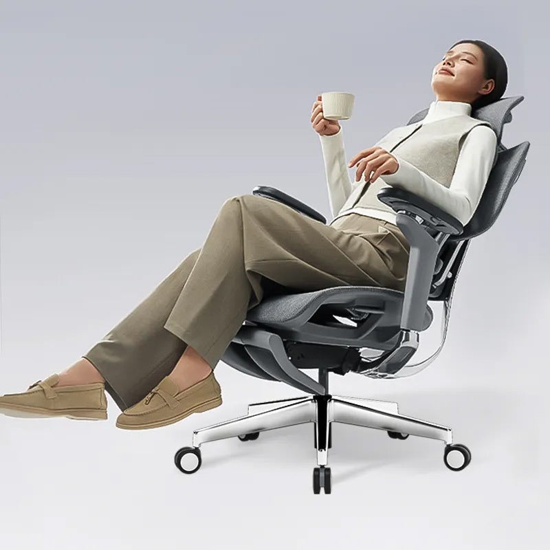 洗練された佇まいと快適性を兼ね備えた、高機能なオフィスチェア。レザーとメッシュの異素材ミックスが上質な空間を演出し、6Dアームレストや多段階リクライニングで長時間の作業も快適です。