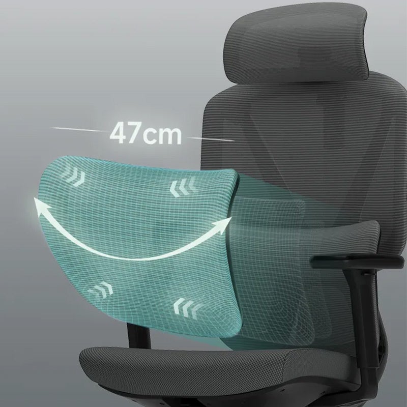 身体のカーブに沿って支える連動サポート構造により、圧力を分散し安定した座り心地。