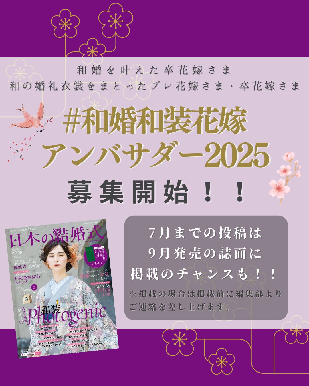 【#和婚和装花嫁アンバサダー2025 大募集】今年もやります!和婚専門誌『日本の結婚式』が、和婚・和装フォトを盛り上げるプロモーションをInstagramで開始!