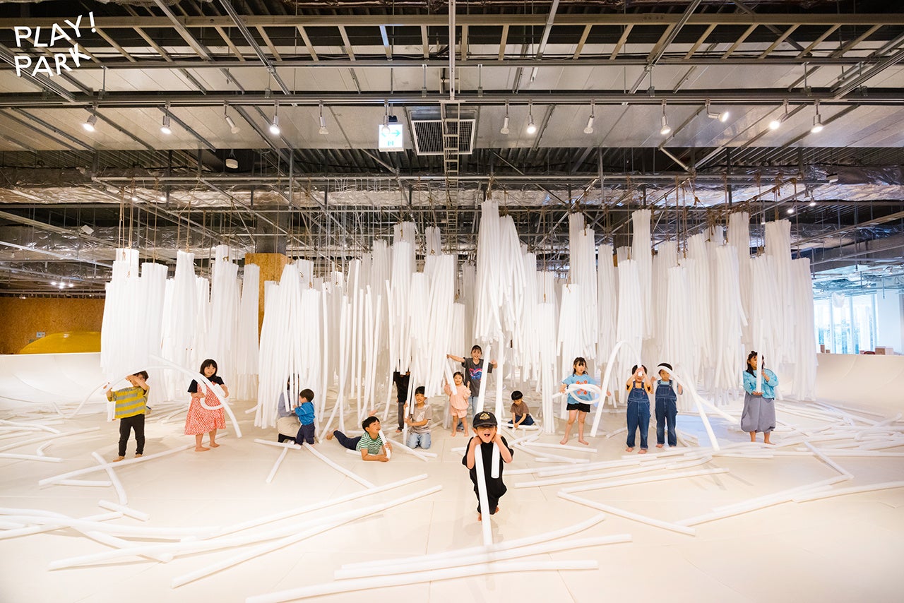 PLAY! PARKは、2020年6月に誕生した、子どもが自由な発想で遊べる、新しい屋内広場です。約1,000㎡の空間は、「ふじようちえん」の設計で知られる、手塚建築研究所によるデザインです。