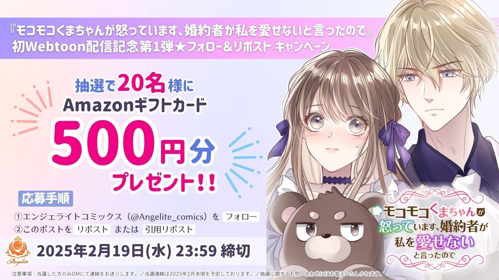 【初Webtoon配信スタート】『モコモコくまちゃんが怒っています、婚約者が私を愛せないと言ったので』を2/13(木)配信開始! 1万円分のギフト券が当たるキャンペーンも実施!