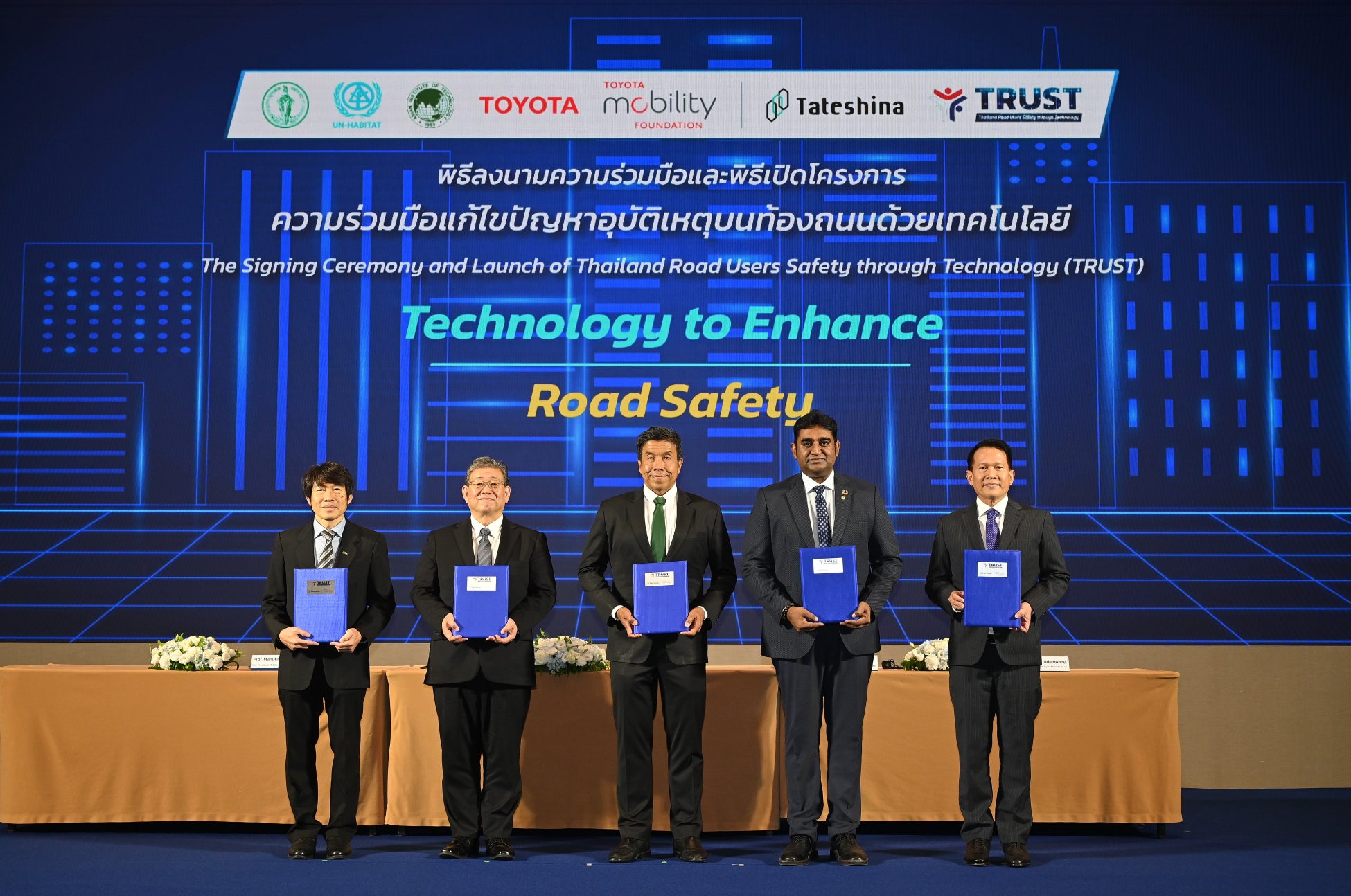 一般財団法人トヨタ・モビリティ基金(理事長:豊田章男、Toyota Mobility Foundation、以下「TMF」)は、企業の枠組みを超えた交通事故死傷者ゼロに向けた取り組み「タテシナ会議」(※1)の海外分科会の活動として、2025年4月28日(月)にバンコク首都圏庁、国連人間居住計画(以下、「国連ハビタット」)、アジア工科大学院、トヨタ・モーター・タイランドと、交通事故低減に向けた覚書を締結しました。今後、車両プローブデータを始めとする各種データを活用した交通安全プロジェクト(TRUST:Thailand Road Users Safety through Technology)を推進していきます。