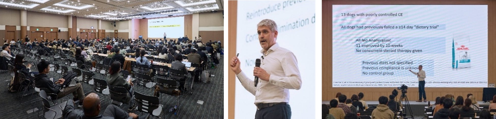 ロイヤルカナンは11月1日、FASAVA 2025で、米国獣医内科学会 栄養学専門医であるNick Cave氏(ニュージーランド)を招き、講演を協賛しました。Cave氏は、慢性消化器疾患および皮膚疾患における、加水分解タンパク食を用いた診断と栄養管理について最新知見を共有しました。ペットの高齢期への対策やサポートの重要性の高まりを反映し、複雑な症例に対する臨床栄養戦略について、多くの獣医師達が積極的にこの議論に参加しました。このセッションは、韓国に2人しかいない獣医臨床栄養学の教員の1人でもあるJung-hwa Lee氏(ソウル大学)が座長を務め、APACから約40人のキーオピニオンリーダーの獣医師達が特別に招待されたほか、参加者は合計で約100名にものぼり、栄養学における高い専門性を示す講演として好評を博しました。