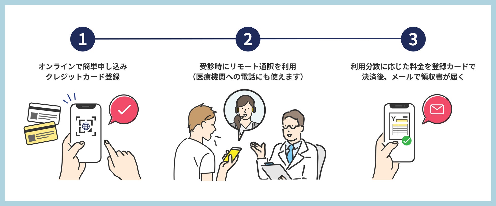 また、医療機関においても、外国人患者の受け入れ体制が未整備の場合の補助的手段として、本サービスの活用をご提案しています。