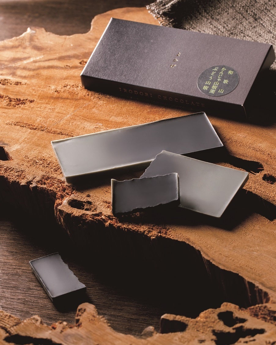 かんじゃ山椒園の、粒が大きく肉厚で、ぶどうの房のような実をつける「ぶどう山椒」を使用。口に入れると、ゆずのフレーバーをべースにしたチョコレートの芳醇さが広がり、「ぶどう山椒」の爽やかな香りがふわっと鼻に抜け、風吹く夜に心温まる冬を表現しています。