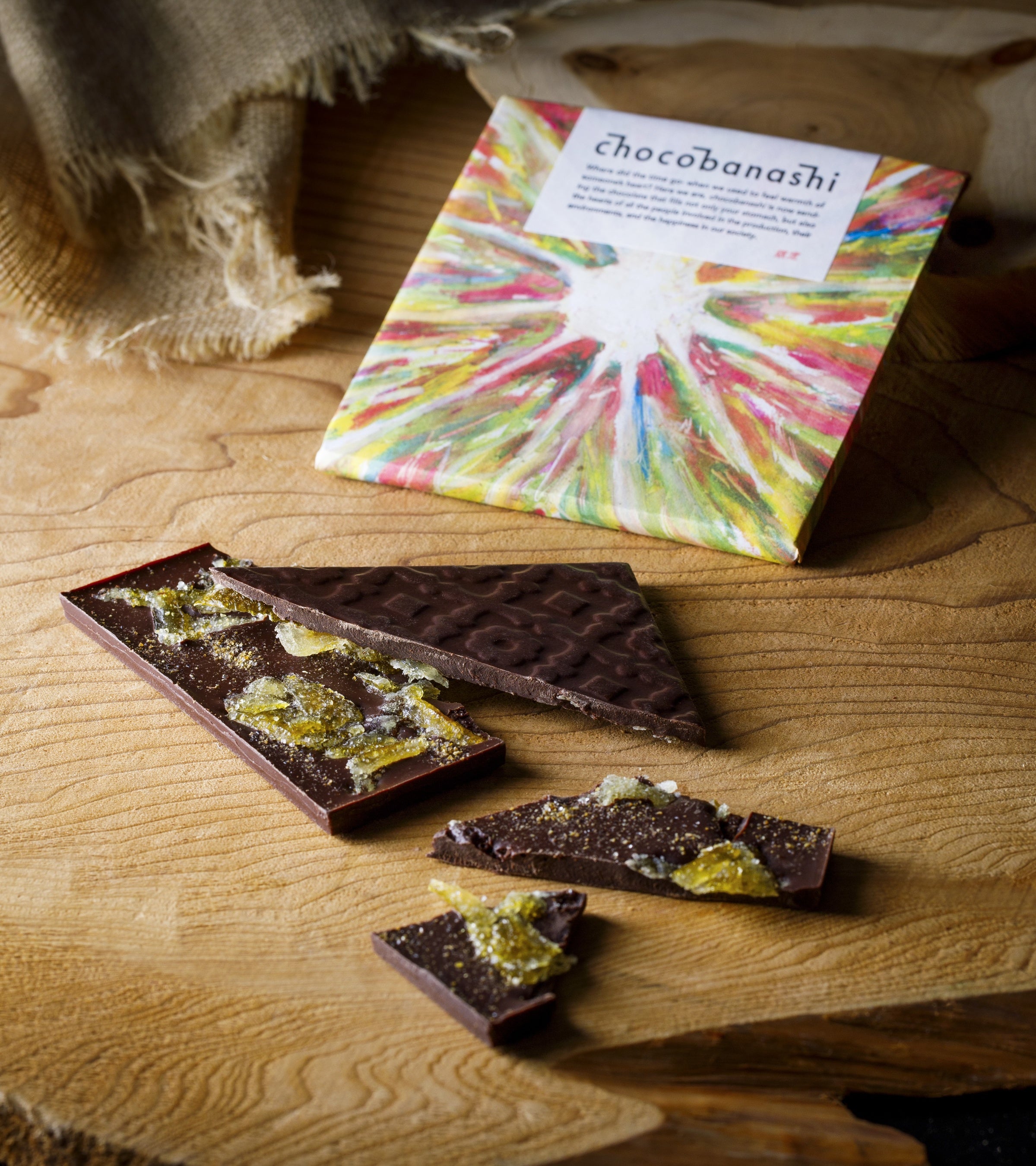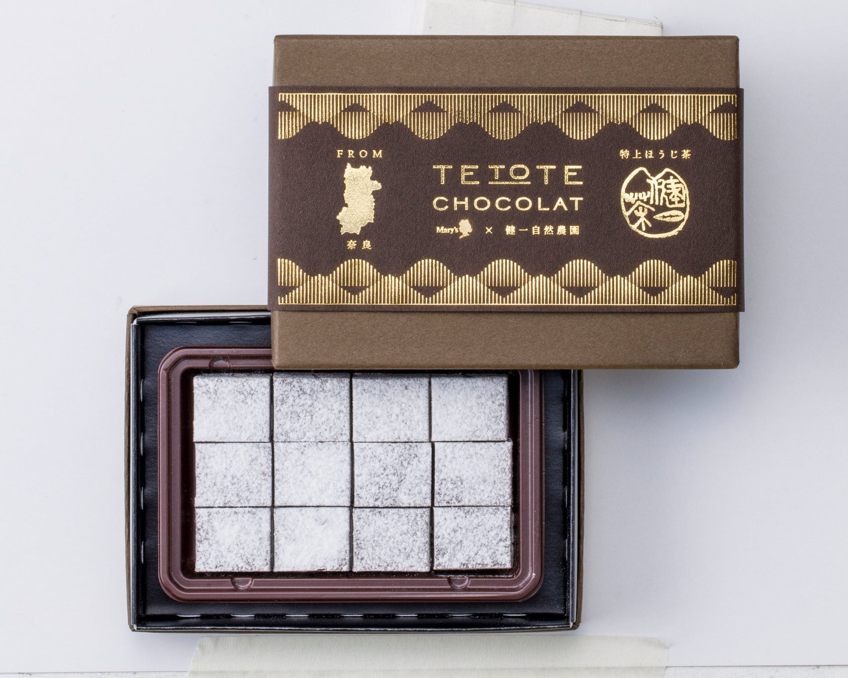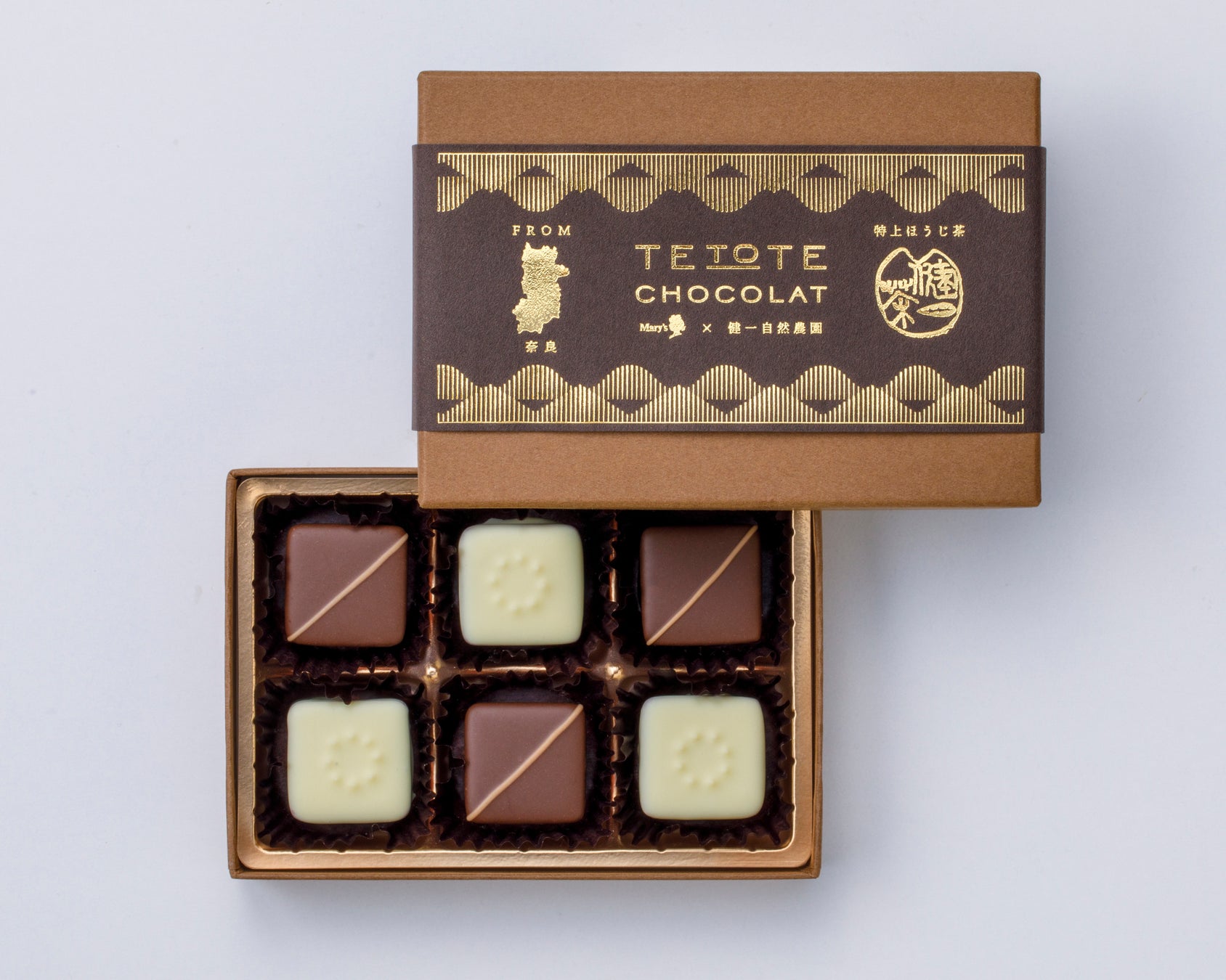 特上ほうじ茶の、薪を使った焙煎特有の香ばしさとスモーキーな優しい香り、澄んだ旨みが引き立つよう、まろやかなミルクチョコレートを合わせ、隠し味にみりんを加えました。
