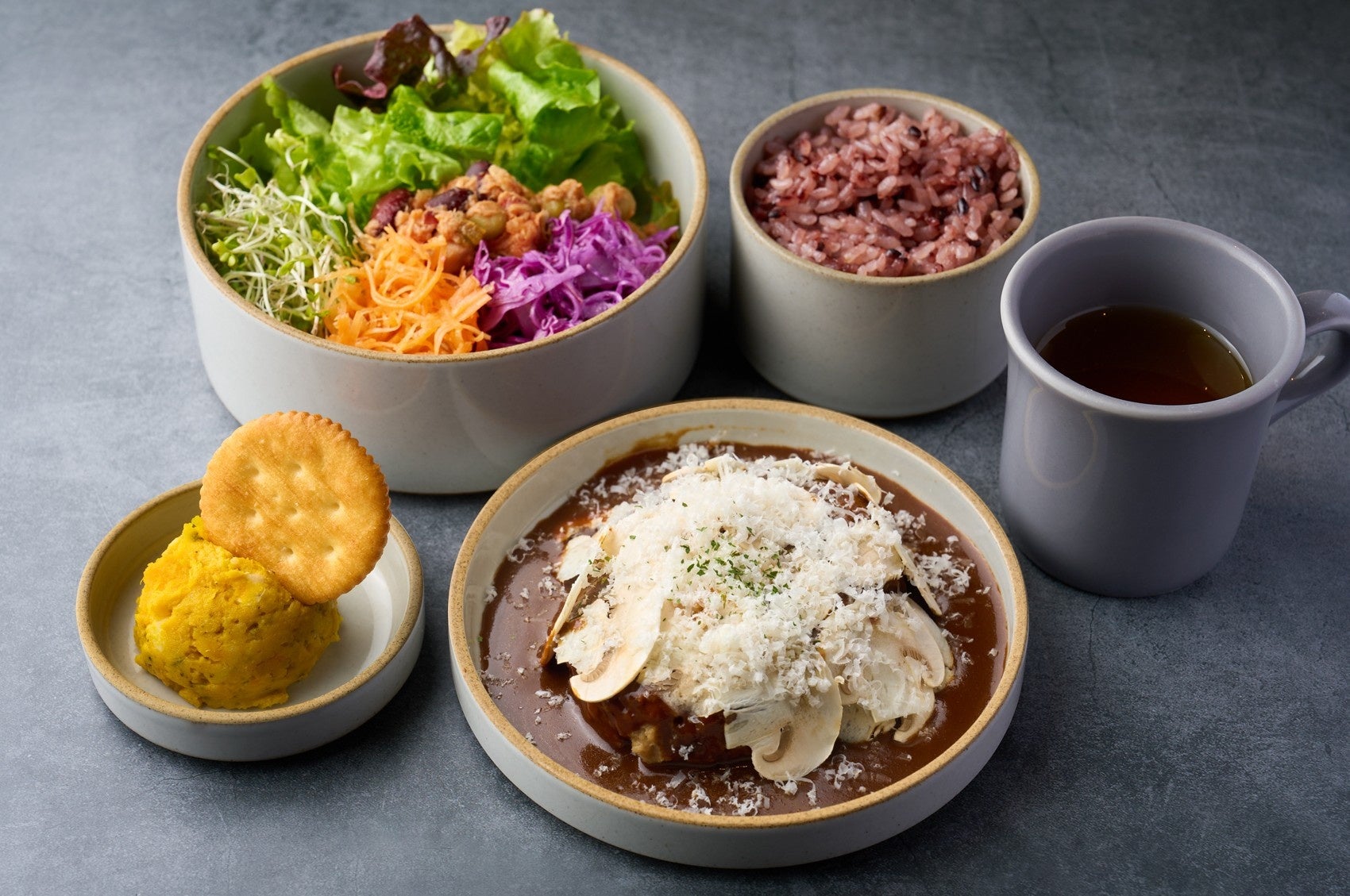 GUILT-FREE PLATE 粗挽きハンバーグ ポルチーニマッシュルームソース