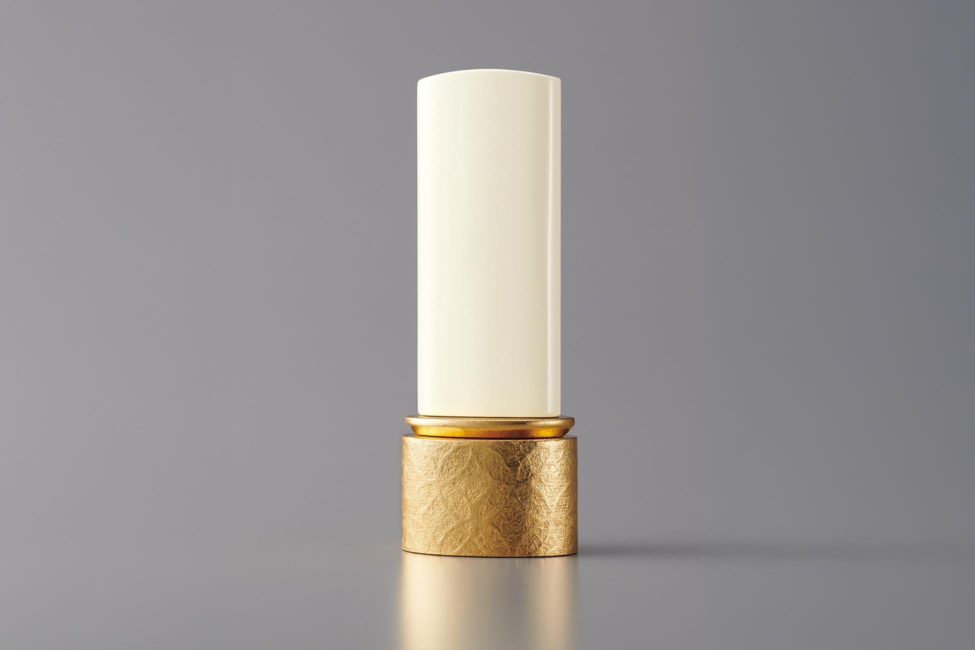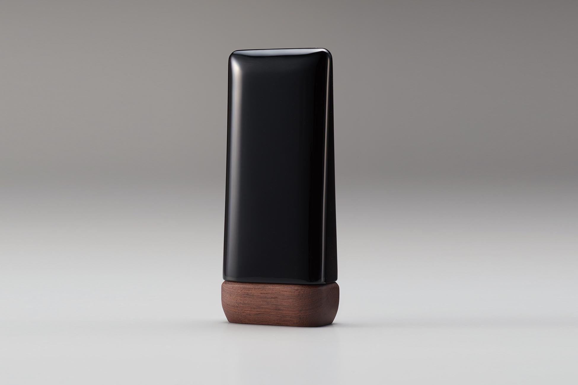 伝統型位牌の黒と金をモチーフに、スタイリッシュなデザインで現代的にアレンジしました。塗り込められた金色の粉が光を受けて繊細に輝きます。