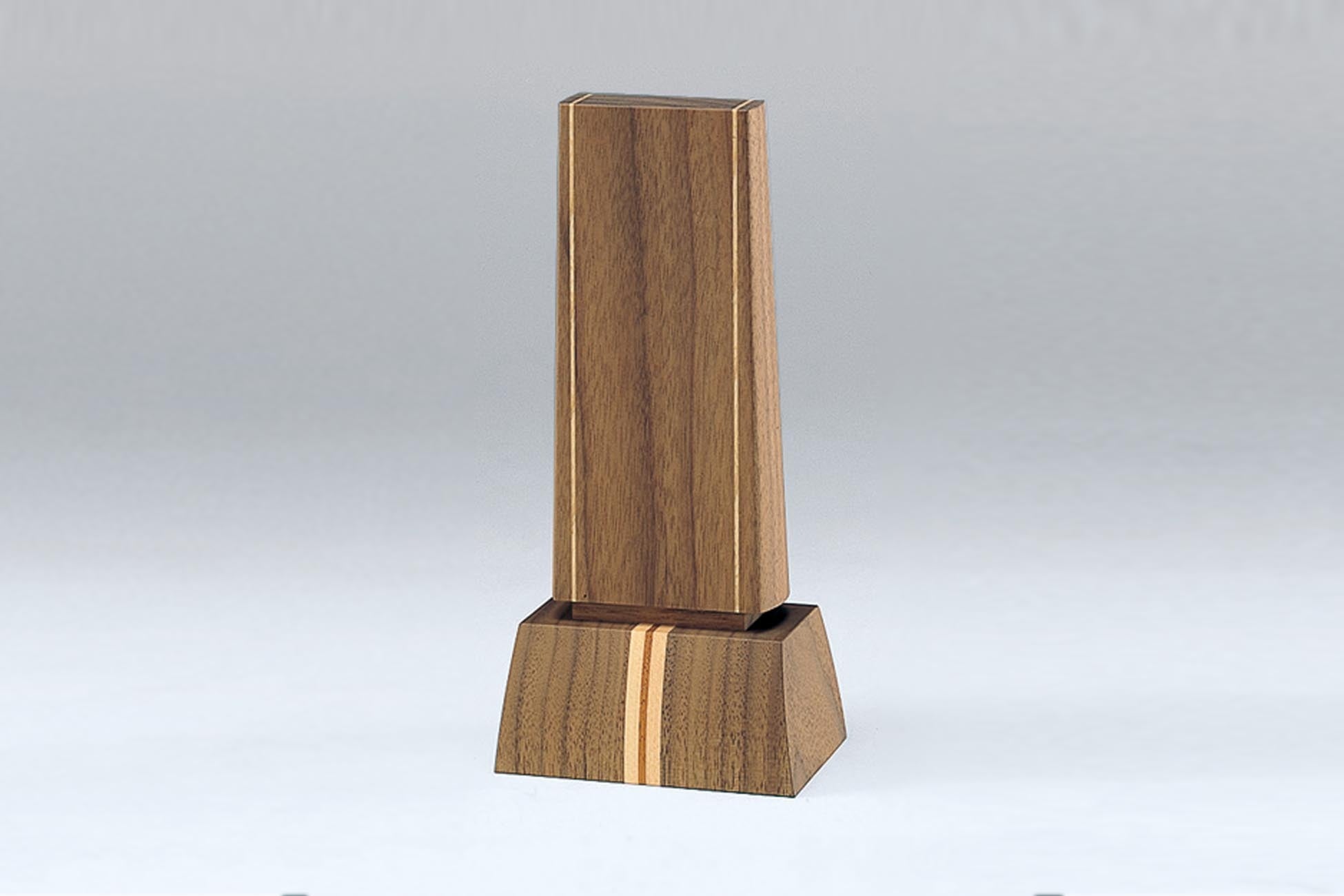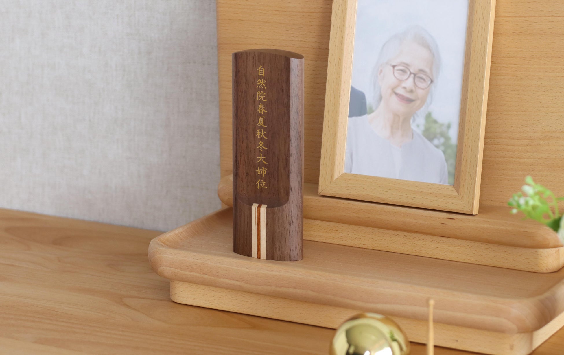無垢材のぬくもりを感じられる木製のデザイン位牌です。木そのものの色味を活かした寄木細工や、丁寧に削り出した優しい曲面など、あたたかみに満ちています。