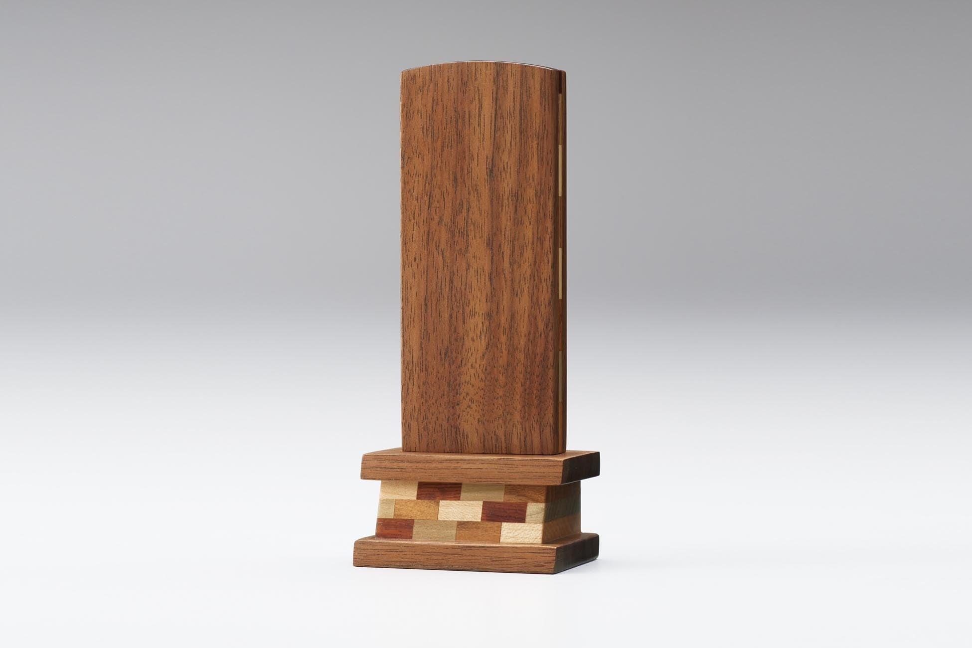 寄木細工を施した、おしゃれなお位牌。ウォールナットの上質感と天然木の色合いを活かした可愛らしさが人気です。