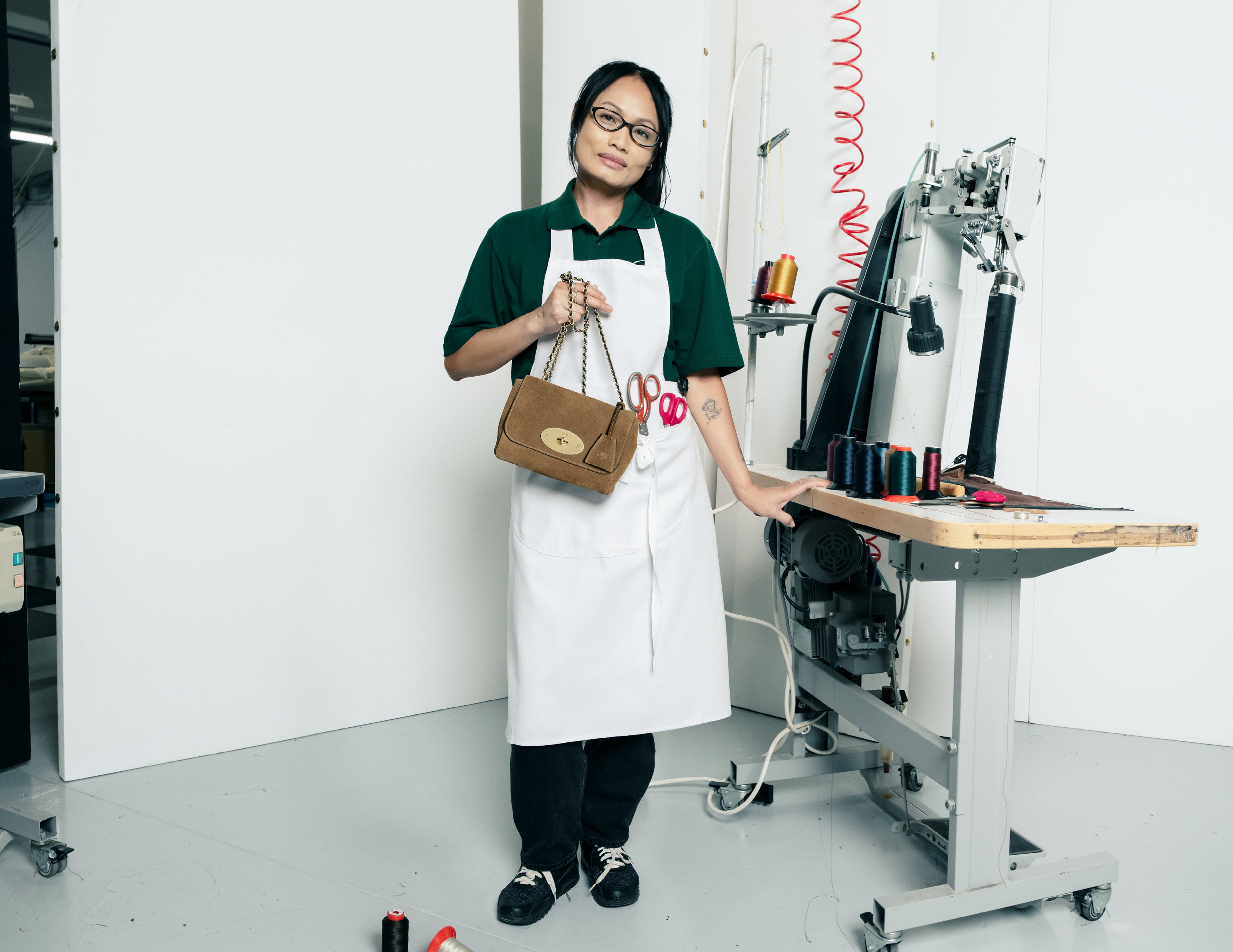 長年のコラボレーターであるティム・ウォーカーが撮影したポートレートおよびスチール写真では、厳選されたマルベリーのコレクションとともに、7名の職人たちが登場。ザ・ルーカリーの工房の床や作業台、花柄のアームチェアが積み重なる空間などを舞台に、その姿が捉えられています。さらに、ウォーカーによるスチール写真に加え、8本のショート動画も公開。職人たちが自身のクラフトや日々の生活、そして長年にわたるブランドとの関係について語ります。