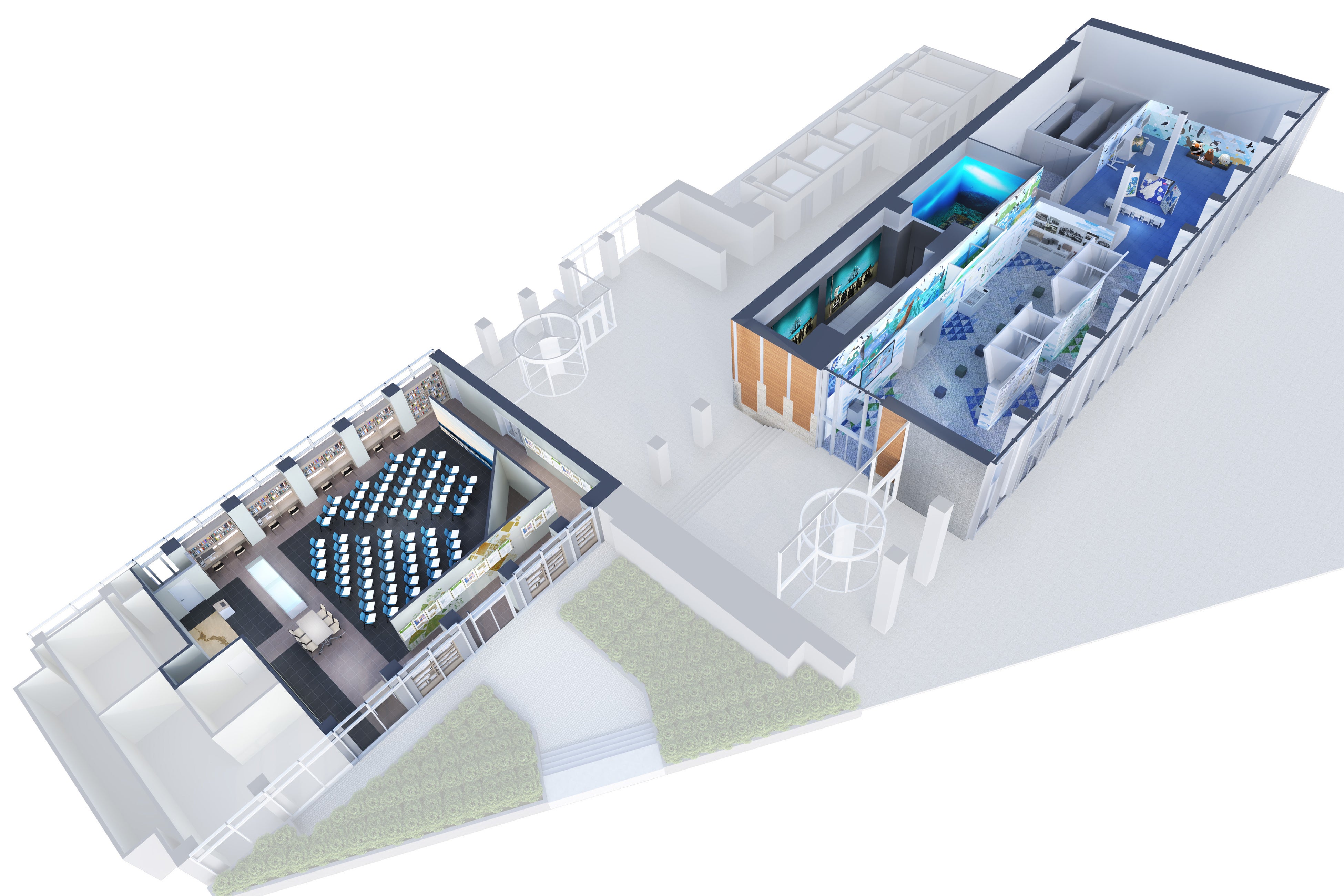 昨年11月に拡張オープンしたゲートウェイホールは、学習指導要領を踏まえ、日本の領土や海洋全般をテーマに「聞く」「調べる」「考える」「議論する」など、多目的に学びを深める空間として活用しています。 「日本の島々や海について知ることは、世界を知る入口(Gateway)となる」—そんな想いを込めて名付けられました。